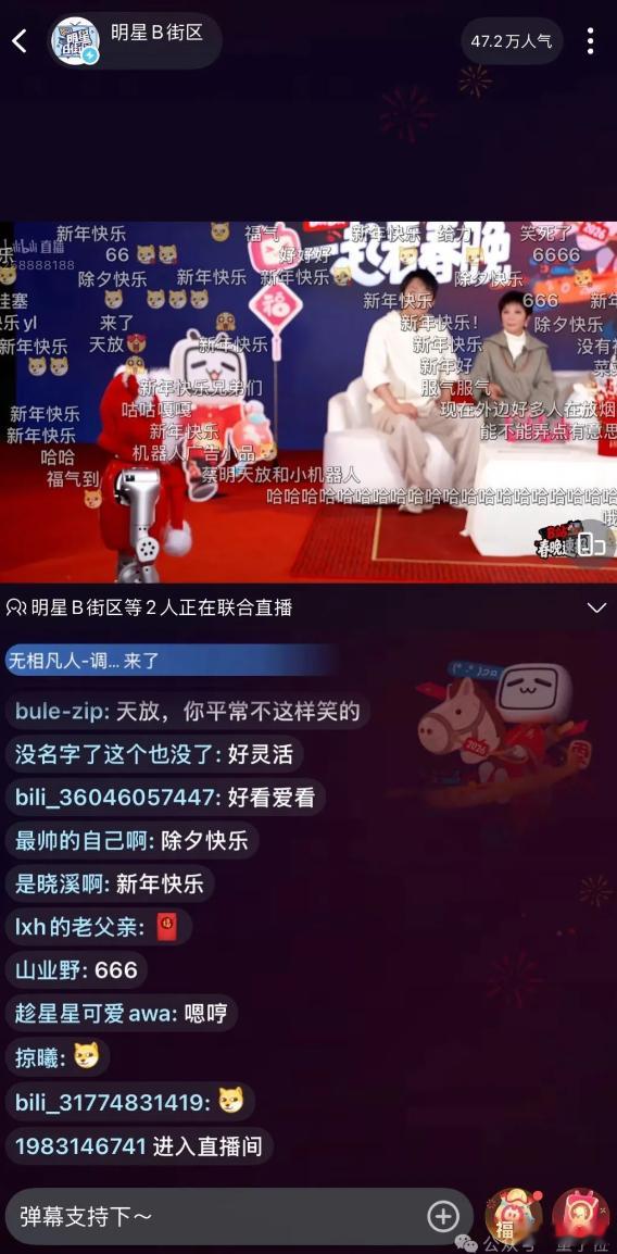 无论是大模型产品,还是具身机器人品牌,都在围绕春节节点密集布局线上互动场景——无论是赶在除夕前就通过“同好直播间”深度潜伏的腾讯的元宝AI,还是在春晚秀完肌肉后马不停蹄赶往直播间互动的松延动力,甚至是刚下舞台就立刻在社区交出“技术作业”的宇树科技……