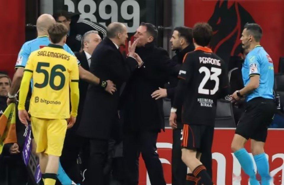 米兰新闻网报道,在米兰1-1战平科莫的意甲第24轮补赛后,两队主帅阿莱格里与法布雷加斯在新闻发布会通道内爆发了激烈冲突,在进入发布厅前,阿莱格里与正要离开的法布雷加斯狭路相逢。两人随即爆发了极其激烈的争吵,言辞激烈且互飙脏话。随后大门被关上,外人无法再听到后续,直到双方工作人员将两人拉开,气氛才逐渐平息。AC米兰1比1科莫足球足球竞彩足球每日足球推荐体彩
