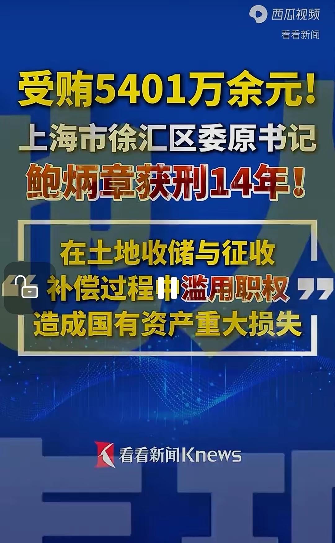大快人心!上海“双面虎”鲍炳章落马获刑,藏得再深也逃不过法网! 曾是上海核心区域的风云人物,鲍炳章手握徐汇、虹桥两大要地,经济重镇、战略枢纽全在他管辖之下。可他台上讲忠诚,台下搞腐败,20年间疯狂敛财5400余万元,还造成国有资产流失超1.56亿元。高档会所、权色交易、家族谋利、对抗审查,样样都沾,两面人嘴脸暴露无遗。 如今被判14年,一切荣华化为泡影。权力再大、伪装再巧,只要触碰纪法红线,终究难逃严惩。反腐无死角,打虎不停歇,这就是最鲜明的警示。 你觉得这样的反腐力度,是不是大快人心?上海贪官 上海贪官潜逃