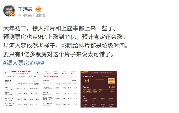 预测票房也从9亿上涨到11亿,预计肯定还会涨。