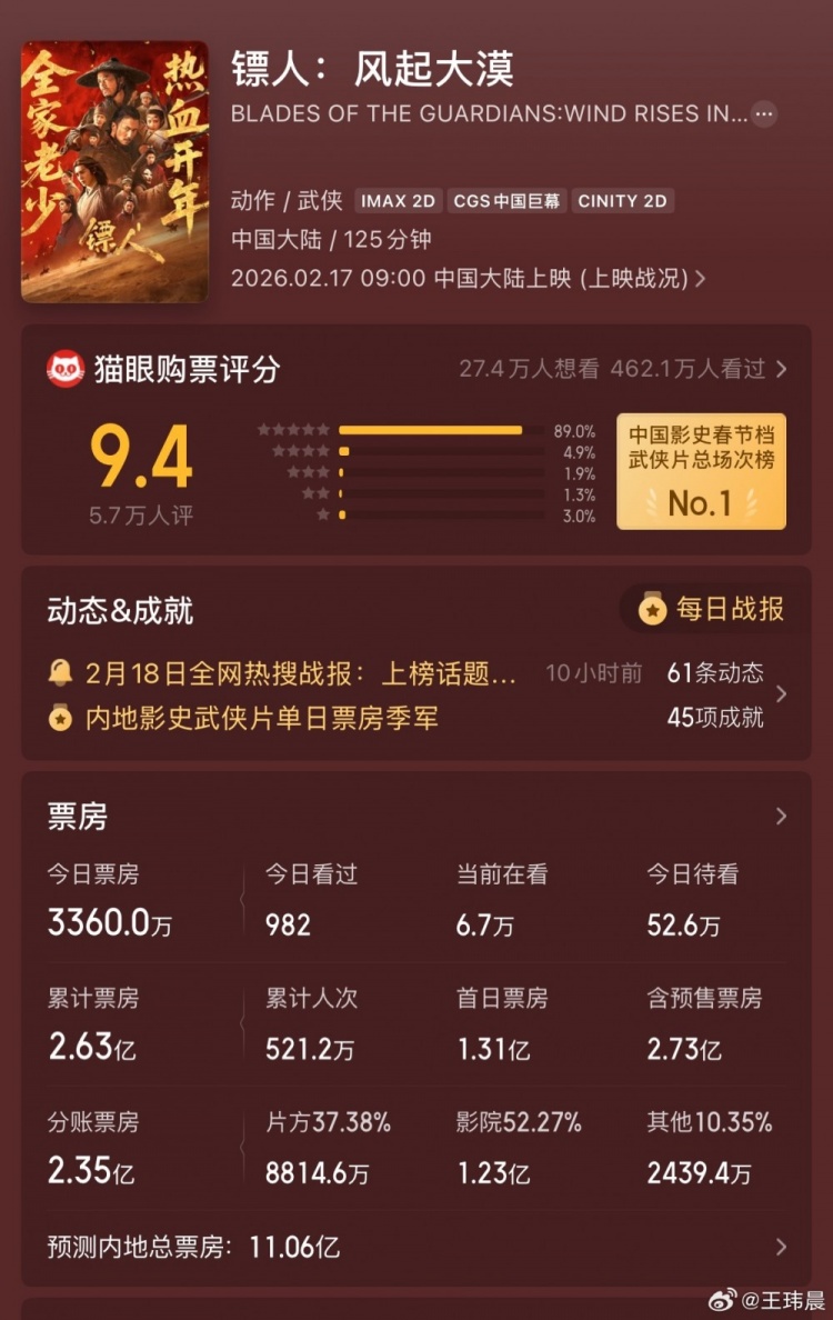 电竞博主谈春节档电影:镖人票房肯定还会涨 星河入梦1亿多太可惜
