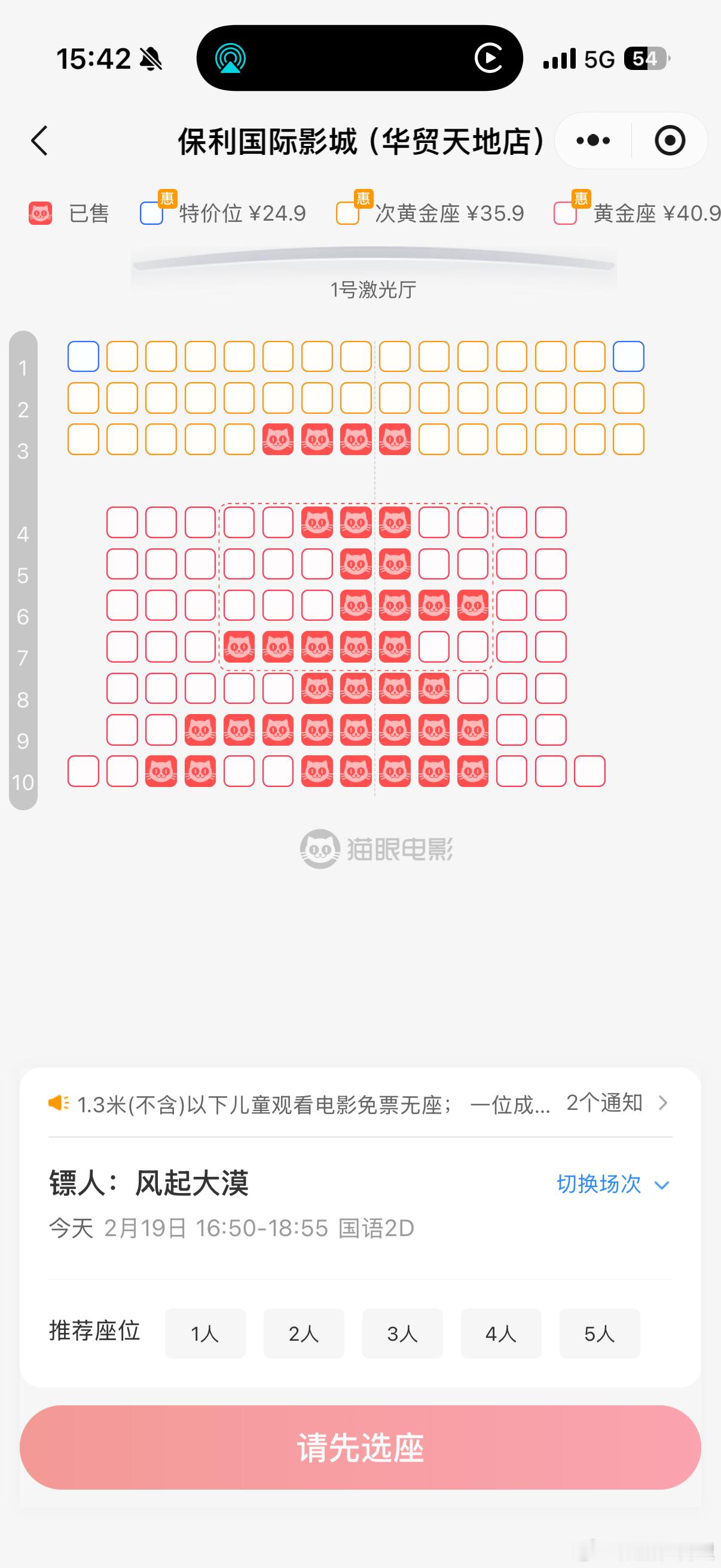 今年春节档电影市场貌似有点冷淡,这三场都是最近时间点的场次,还可以随便买到票。这