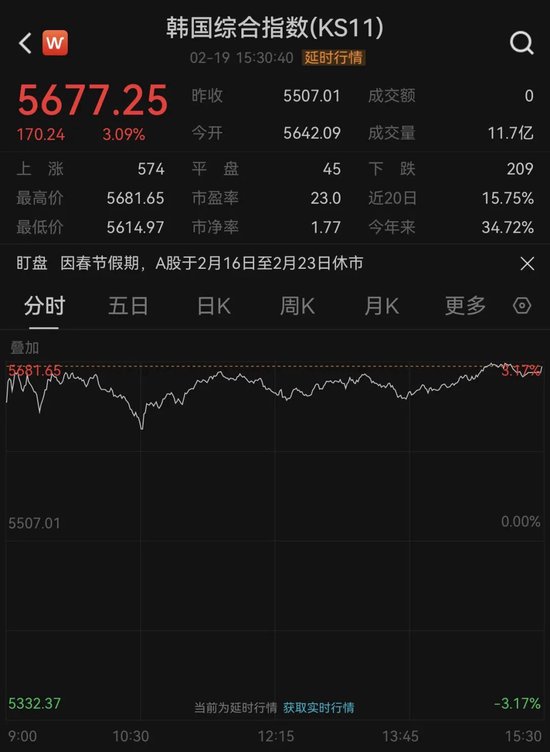 春节后首个交易日,韩国股市创出新高。