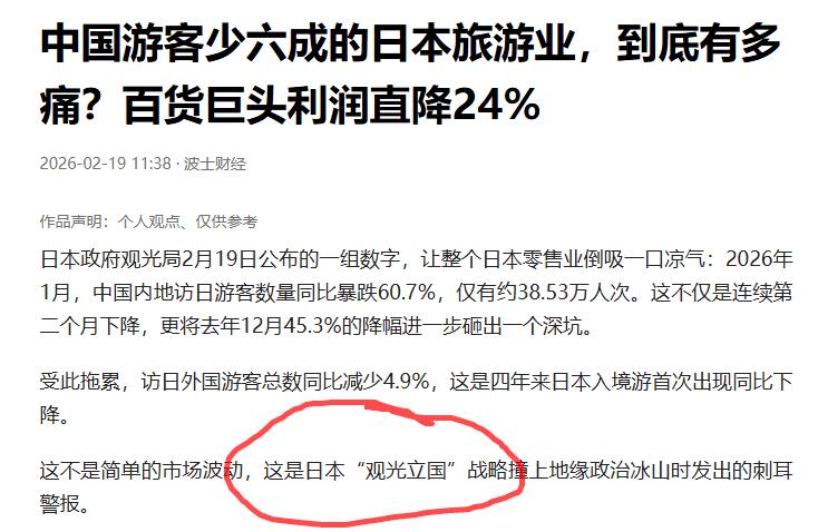 他们痛不痛关我们屁事。 反正我们也不想去一个对我们不友好的国家旅游,喜欢热脸去贴冷屁股的人,让他们去好了。 我们中国拥有世界所有的地形地貌,想看什么都有。 他们的东西卖不动也很正常,毕竟有很多东西的产地都是中国。 顺便说一句,看到“观光立国”几个字就笑了。 泰国的今天就是日本未来的命运。 准备接受吧,如果不接受,非要犟着和我们干一架,那菲律宾的今天就是日本的未来。 点右上角关注我,我们一起去看这个魔幻的世界