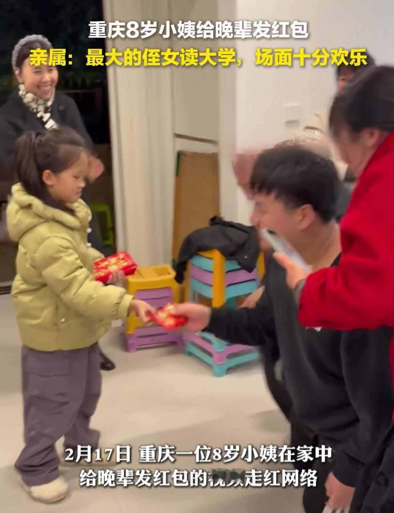 8岁小姨掏空压岁钱发红包,一群大人围着她拜年!场面太魔幻了… 春节拜年,红包都