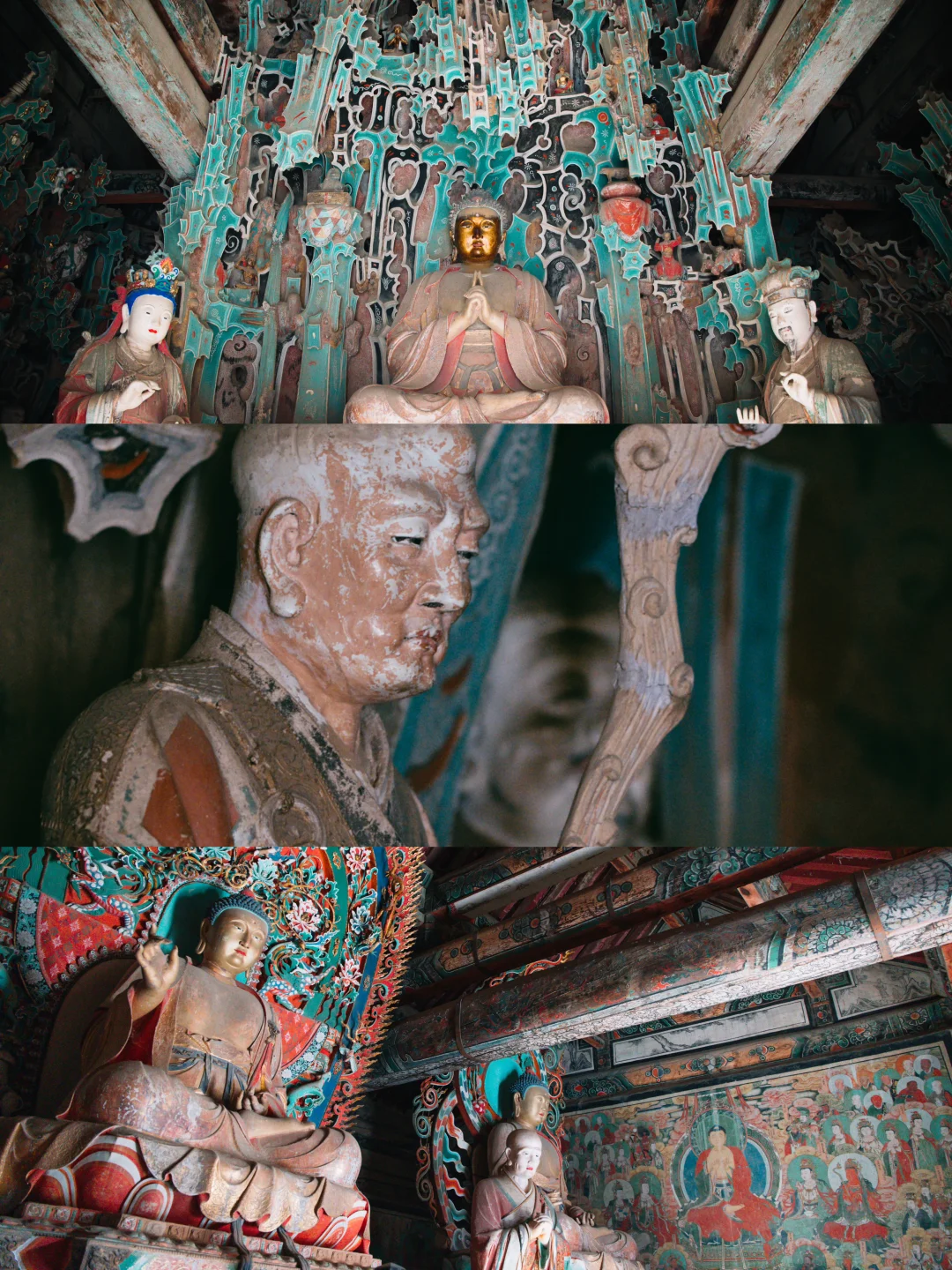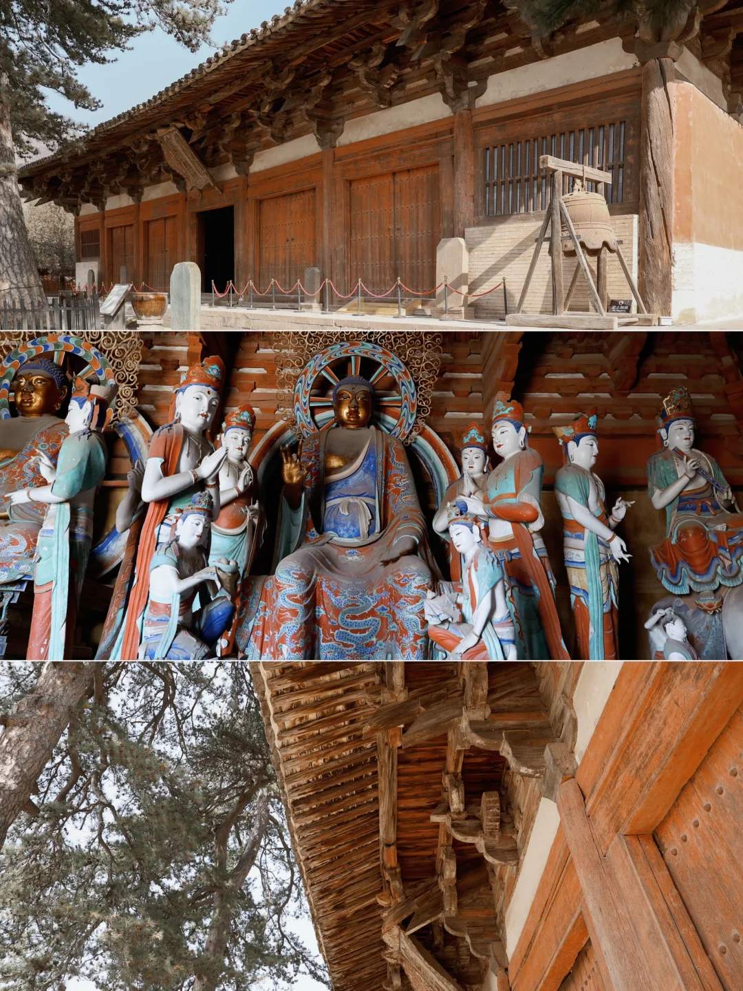 ✔️南禅寺:我国现存最古老的唐代木构,殿内保存17尊唐代彩塑,造型饱满,与莫高窟风格一脉相承