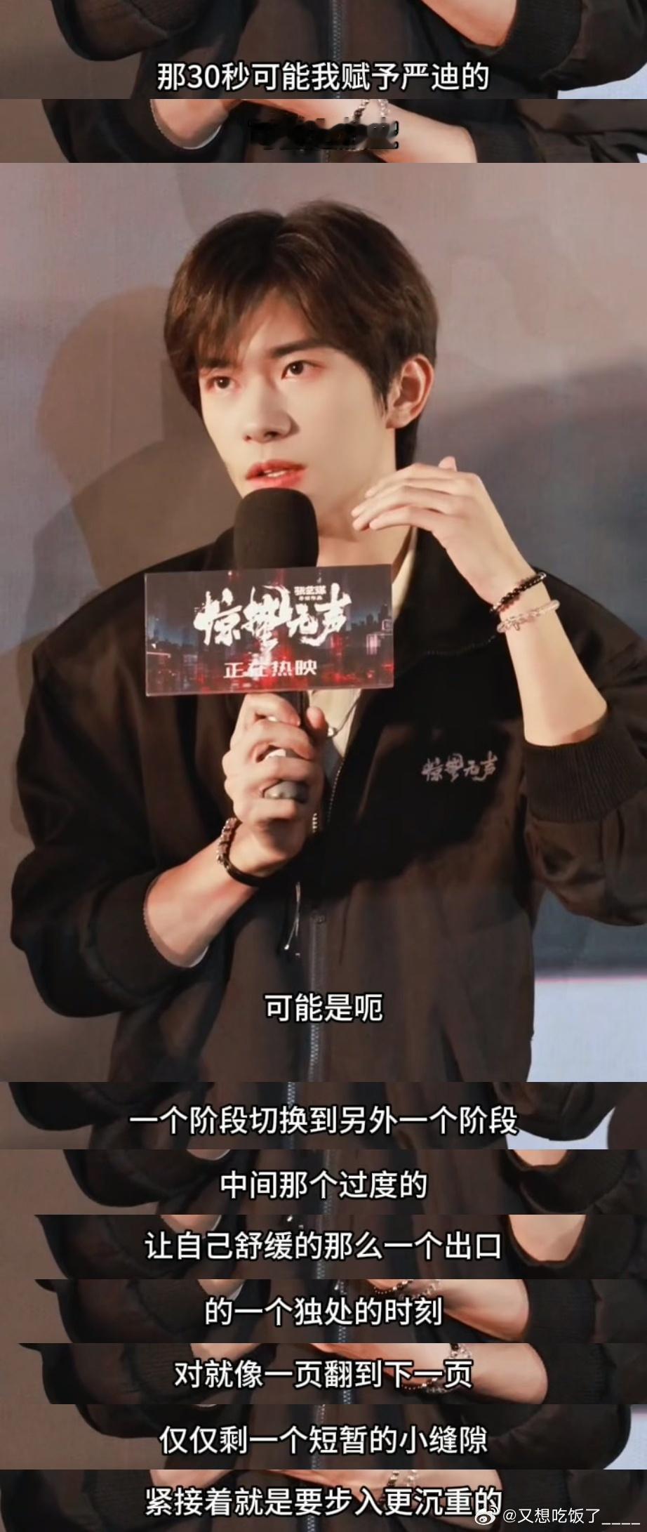 易烊千玺回应严迪30秒文学终于懂了这30秒!易烊千玺在成都见面会说,严迪的沉默是复杂情感喘息,藏着身不由己,也藏着至死不渝的坚守