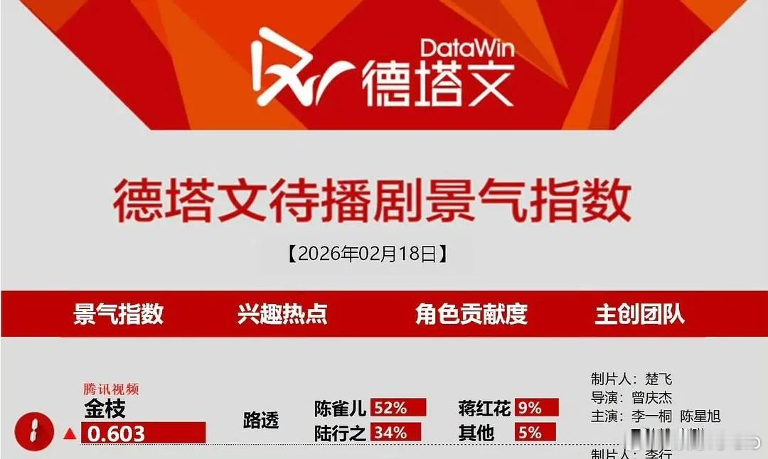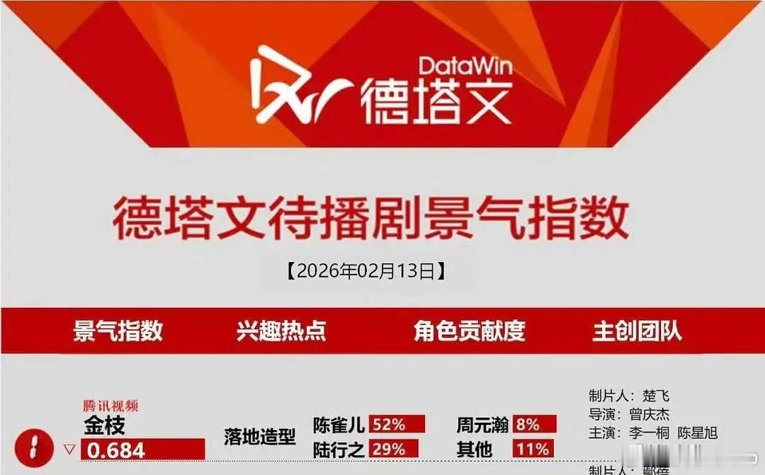 金枝开机第十天德塔文待播剧指数又断层第一了2.10开机到现在十天有七天都是待播剧