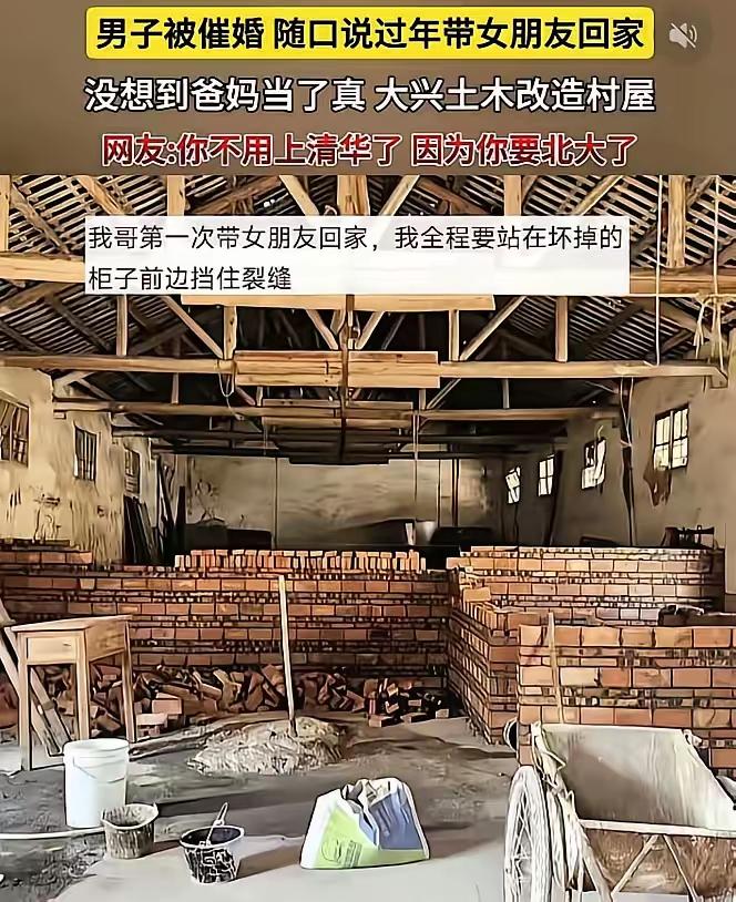 这下玩笑开大了!湖南,一男子过年前和父母打视频,母亲看他一直没有对象,心里着急,就多唠叨了两句,男子随口说要带女朋友回家过年,结果等他过年回家时发现,父母不仅当真了,还把一个房子给收拾出来。网友:这下神仙都救不了你了。 男子当时只是被母亲的催婚念叨得有些无奈,在外打工多年一直忙于工作,感情生活没有着落,每次和家人视频,婚恋问题都是绕不开的话题。他只是想随口搪塞过去,压根没料到父母会把这句玩笑话记在心里,还认认真真做了所有准备。踏上返乡路程的时候,他还在心里盘算着该怎么找借口圆场,推开门的那一刻,眼前的场景直接让他愣在原地,半天说不出话。 父母特意腾出了家里采光最好的一间闲置房,从墙面到地面都彻底打扫干净,原本堆放在房间里的旧物件全部规整妥当。床上铺着崭新的纯棉床单被罩,花色是长辈眼里温柔又喜庆的样式,床头柜上摆着全新的洗漱套装,连女生专属的拖鞋、居家睡衣都提前买好,尺码都是按照男子平时描述的身形准备的。阳台还新摆了几盆绿植,整个房间被收拾得温馨又整洁,处处都透着用心。 母亲还拉着他细数准备的东西,年货特意备了双份,都是按照年轻人的口味挑选的零食水果,冰箱里塞满了新鲜的菜品,就等着准儿媳上门下厨。父亲甚至提前打听好了周边的游玩景点,打算等孩子带着女友回家后,带着两人四处转转。就连给女孩准备的新年红包,都早早包好压在枕头底下,金额是长辈眼里寓意吉祥的数字,每一个细节都藏着二老满满的期待。 男子站在收拾妥当的房间里,心里又酸又涩,还有说不出的愧疚。他能清晰感受到,父母的较真从来不是为难,而是藏在催婚背后最朴实的牵挂。他们不奢求孩子能有多出息,只盼着常年在外漂泊的儿子,能有个知冷知热的人陪伴,往后的日子能有个依靠。这份沉甸甸的心意,让他根本舍不得直接戳破谎言,怕看到父母失落的神情。 他只能先谎称女朋友临时遇到工作急事,没能一起赶回来过年,父母脸上虽然难掩失望,却也没有过多责怪,只是反复叮嘱他,下次一定要把人带回家看看。这件事被男子分享到网上后,迅速引发了网友的热议,大家在调侃他“挖大坑自己跳”的同时,也纷纷被这份朴素的亲情打动。 春节期间的催婚,是很多在外打拼年轻人都会遇到的情况,湖南当地的家庭大多重视亲情团聚,长辈对子女的婚恋牵挂,更是刻在日常的点滴里。这件看似搞笑的生活趣事,没有任何戏剧化的编排,就是最真实的家庭日常,也戳中了无数年轻人的共鸣。 我们总会对父母的唠叨感到烦躁,却常常忽略唠叨背后的牵挂,父母的期待从来不是负担,而是家人之间最真切的爱。这场小小的玩笑,没有引发家庭矛盾,反而让男子更读懂了父母的心意,也让网友看到了春节最动人的模样,不是丰盛的年货,而是家人藏在细节里的在乎。 各位读者你们怎么看?欢迎在评论区讨论。