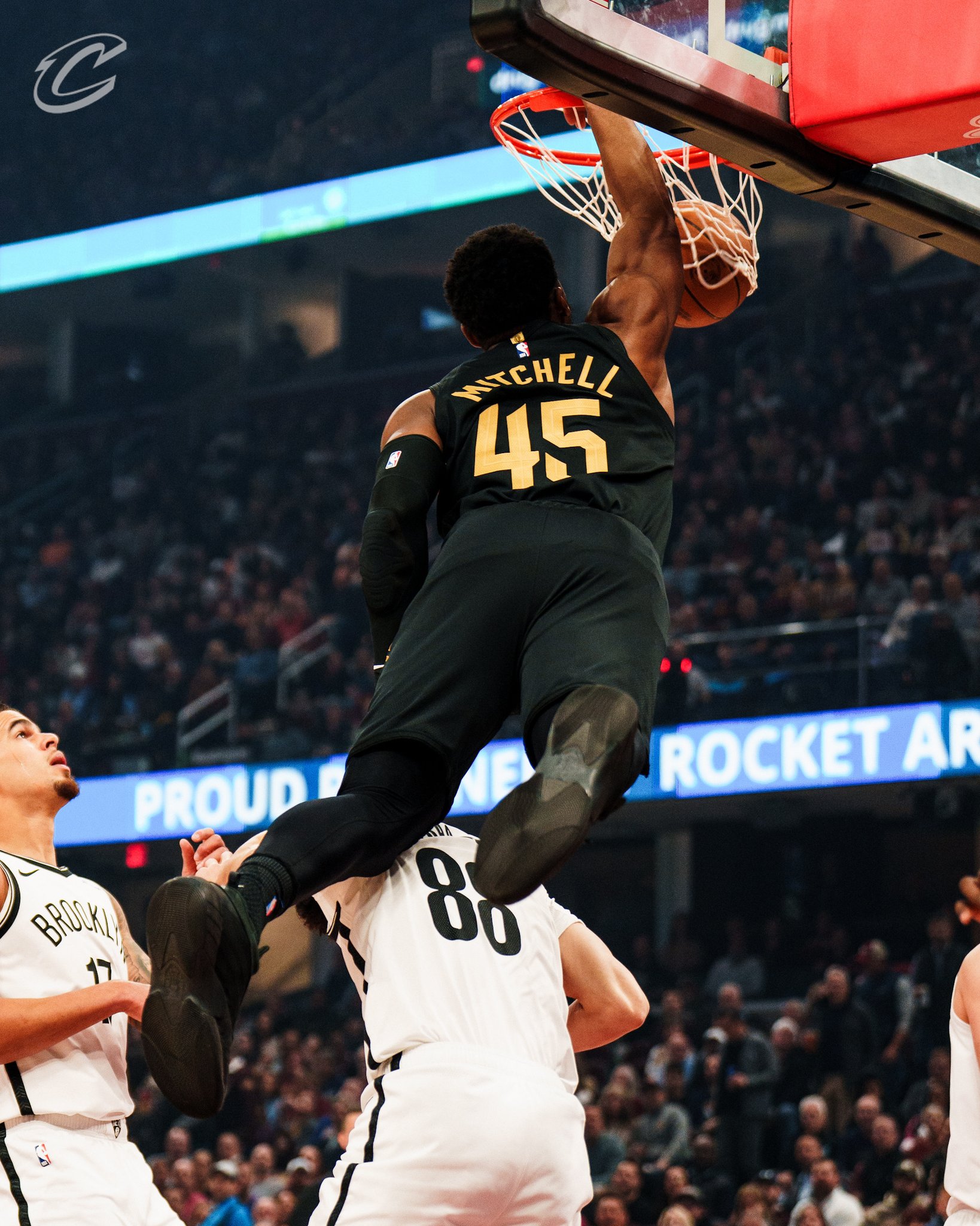 巨星连线!骑士社媒分享哈登助飞米切尔空接暴扣的精彩瞬间