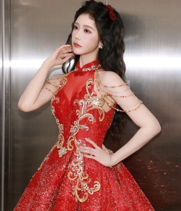 王艺瑾的这一身,这红妆还是有点怪怪的,nice!