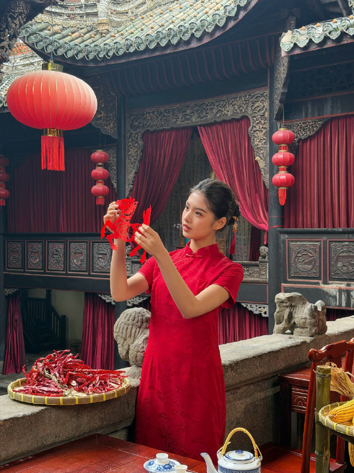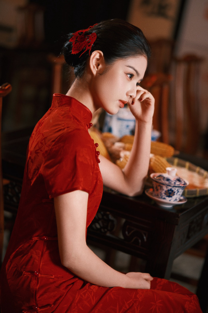 艾米的红色旗袍,气质如何?