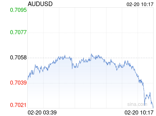 新浪外汇消息2026年02月20日,截至10时17分,外汇市场上澳元兑美元汇率跌破1澳元兑换0.7022美元。跌幅为-0.5101%