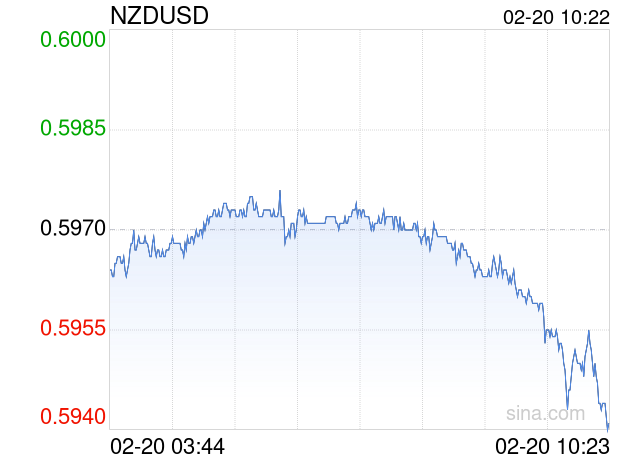 新浪外汇消息2026年02月20日,截至10时22分,外汇市场上新西兰元兑美元汇率跌破1新西兰元兑换0.5940美元。跌幅为-0.5025%