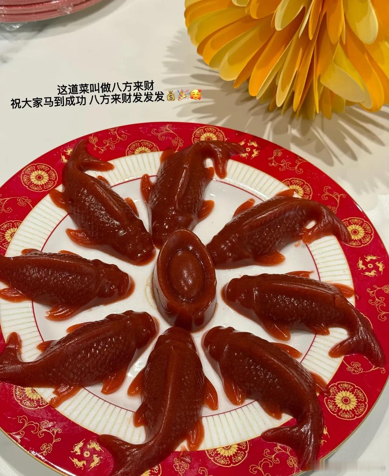 潘玮柏老婆宣云晒过年大餐,正中间的菜是八方来财