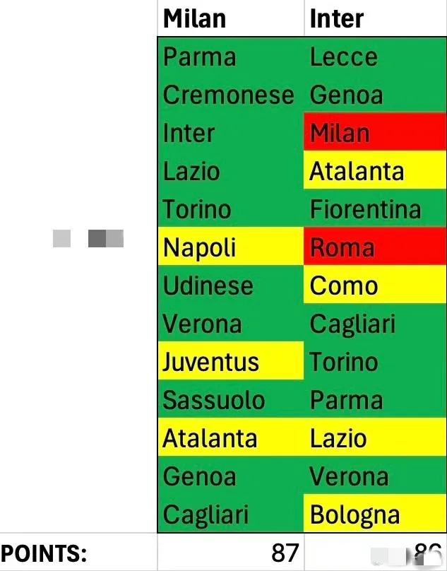 逼平科莫后意甲还剩13论,AC米兰球迷的传统节目“excell反超国米勇夺联赛冠军”它又来了!! 国米球迷纷纷围观点赞!并纷纷指出此表亮点在于,和去年一样,就算在梦里,毛豆们还是不敢梦想赢一回他们的尤文跌,这骨子里的DHA制约啊!真是让人赞叹![赞][赞][赞] 但是,虽然梦想是87,可74分的欧冠及格线,米兰真的有把握拿到吗?说到底,前25轮毛豆一共也就拿了54分,后13轮有5个强敌,一定能包赢7场吗? 有没有另外一种可能,就是AC打平或输给国米,然后全队士气下降,后续做客输给那波里,输给尤文亲跌,虽然逼平亚特兰大,但还是被罗马积分超过,最后排第5,连续第二年进不了欧冠呢?