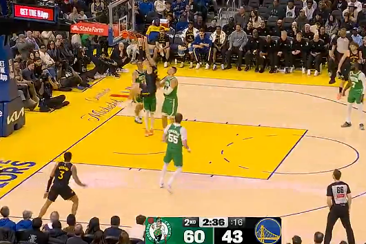 首分!铂金篮下接球顺势双手暴扣,取得加盟勇士后首分