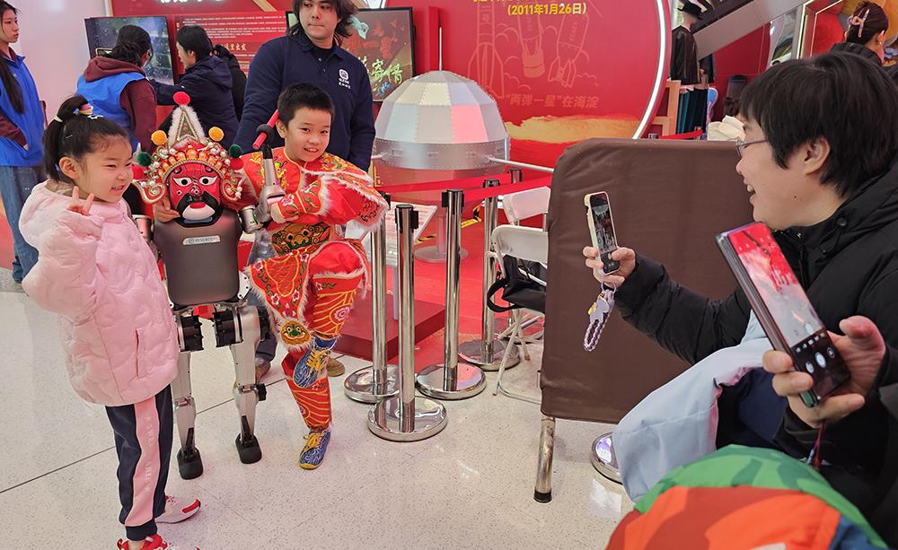 2月19日,小朋友与机器人合影留念。中国日报记者耿菲菲摄