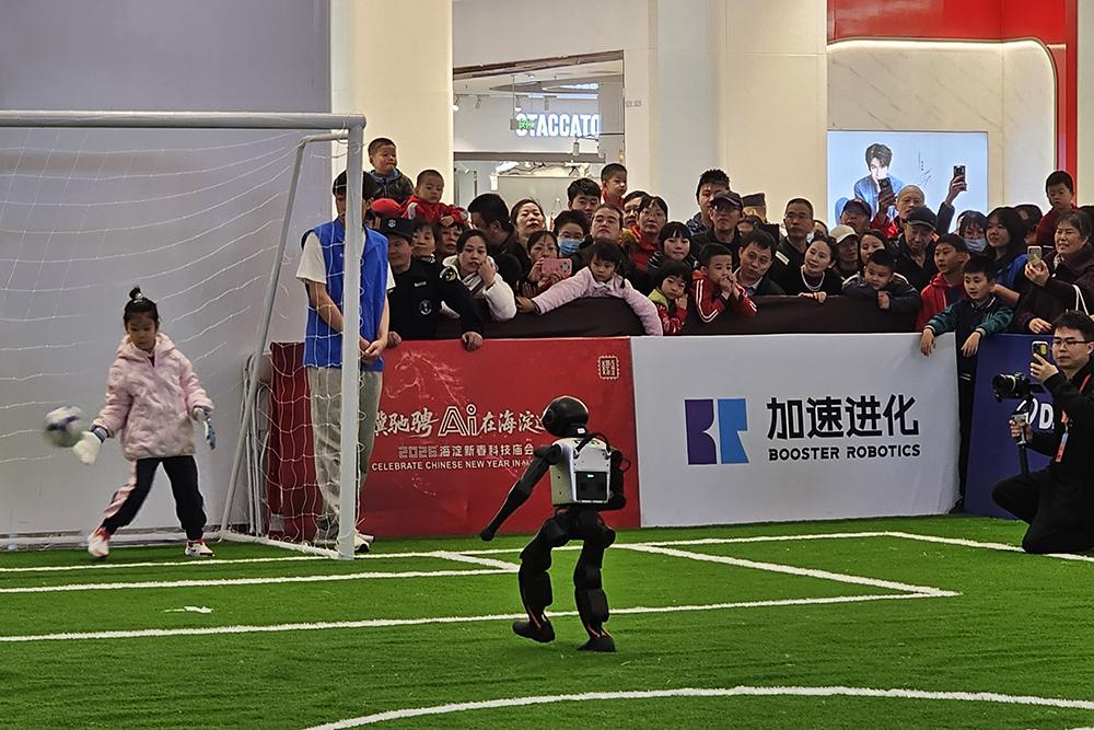 2月19日,“人机点球大战”吸引市民围观。中国日报记者耿菲菲摄