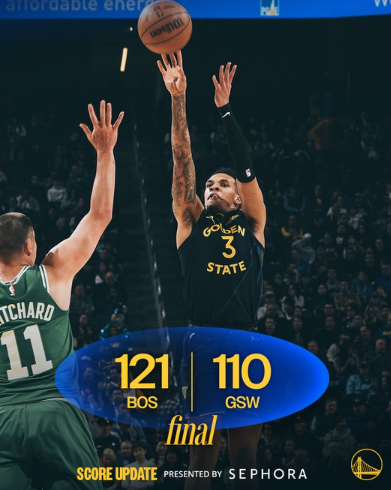 虎扑02月20日讯今天NBA常规赛勇士主场对阵凯尔特人的比赛已经结束。全场战罢,勇士以110-121不敌凯尔特人。