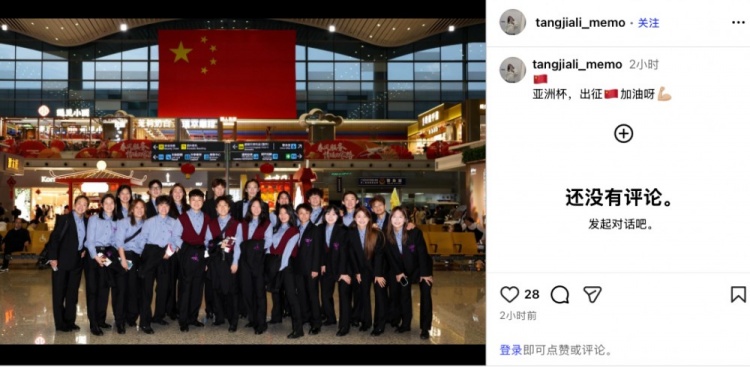 今日唐佳丽更新社媒,晒出全队出征前在机场的合影,并配文写道:“亚洲杯,出征加油呀”