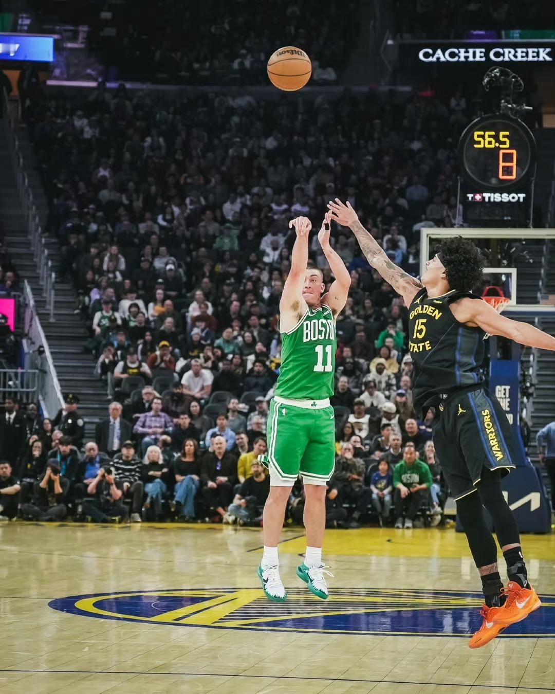 勇士110-121不敌凯尔特人! 冠军中锋首秀12分,追梦0分! 北京时间2月20日,NBA常规赛的一场焦点战,勇士对阵凯尔特人。 库里和巴特勒继续缺席,坐镇主场的勇士首节表现可圈可点,火热的外线手感是稳住节奏,理查德发挥尤为惊艳,只是进入次节投篮效率持续下滑,他们突然被一波流甩开巨大差距,新援波尔津吉斯似乎还没和队伍建立默契度,上半场51-74暂时落后23分。 凯尔特人是火力全开,阵容空间感十足,几乎每人都能拉开投篮,全民皆兵是攻防两端逐渐形成压制,回到下半场的角逐,虽说效率略有下滑,但拥有足够的容错机会,他们始终牢牢占据主导权,不过末节倒是有较大幅度的波动,遭遇猛烈的反扑,主教练换上主力阵容控制节奏,普理查德连飚三分稳定军心。 勇士韧性够强,即使大比分落后,仍没有放弃拼搏,只是差距过大,未能上演绝地翻盘,最终110比121落败。 冠军中锋波尔津吉斯首秀替补出战17分钟,投篮9中5得到12分+1板1助攻1盖帽,随着对于比赛的适应,整体表现比较合格,投篮水准在线,态度积极,只要能保持健康,相信可以发挥应有的价值,体能和防守还需要时间慢慢恢复。 格林19分钟投篮7中0,一分未得,正负值-28全队最低,惨不忍睹。 勇士遭遇一波两连败,29胜27负的战绩仍排西部第八。