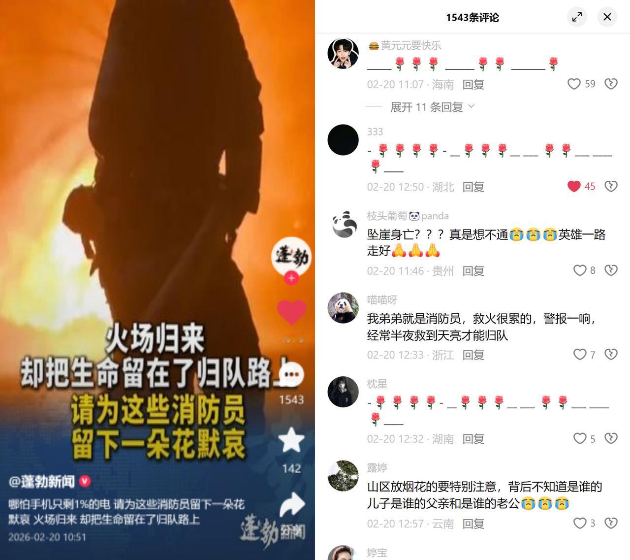 湖南6名消防员灭火返程坠崖牺牲 2月19日,湖南新化的消防员在炉观镇灭完火返程,消防车坠崖,6人牺牲1人受伤。 这消息看完,真的让人揪心。 你知道炉观镇的路有多险吗?飞鹅界那地方是悬崖急转弯,高差足足一千多米,路窄弯急,开过去都得攥紧方向盘。 更别说这些消防员说不定刚熬了个大夜! 有人说自己弟弟是消防员,经常半夜救火到天亮,警报一响不管啥时候,套上衣服就得冲。灭完火本来就累得快瘫了,还要硬撑着开这种要命的山路。 他们哪里是什么超人?不过是跟我们一样,上有老下有小的普通人啊!是别人捧在手心里的儿子,是孩子依赖的爸爸,是老婆牵挂的老公。 而这一切,可能只是因为有人随便烧荒、违规放烟花?那些图一时方便的人,凭什么让别人用命来买单? 我们总在歌颂消防员的逆行伟大,可谁真正看见他们连轴转的疲惫?谁看见那些藏在英雄标签下的隐形代价? 英雄一路走好,只希望这样的悲剧,再也别发生了。