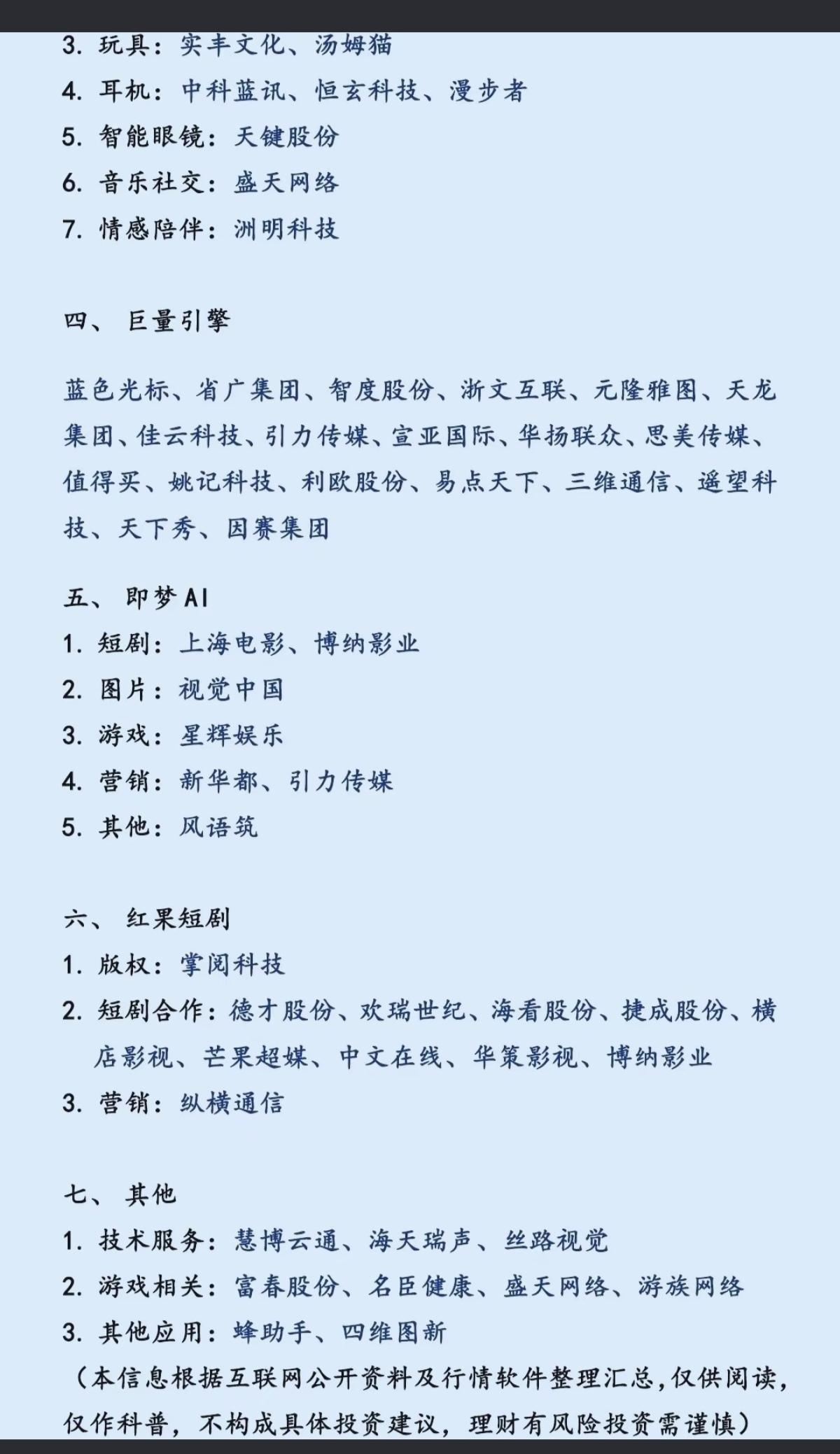字节跳动:相关概念股梳理! 1.字节跳动算力 2.火山引擎云服务 3.豆包大模型 4.巨量引擎 5.即梦AI 6.红果短剧 相关核心龙头关联股: