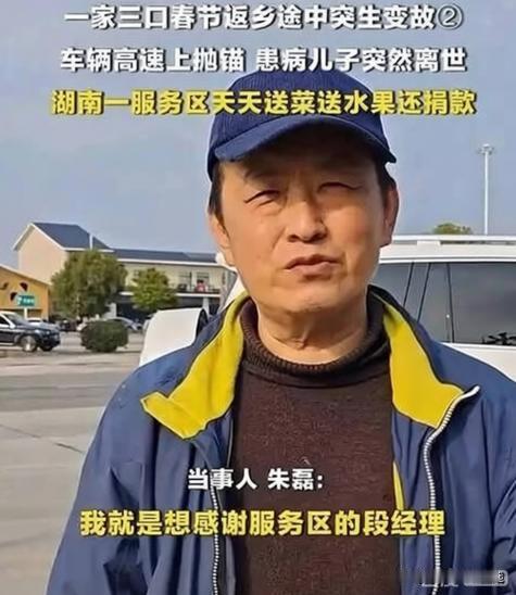 在这个寒冷的冬日,朱磊一家原本满怀希望地踏上返乡之路,却在途中遭遇了突如其来的悲剧。 车辆的故障让他们在湖南涟源市桥头河服务区滞留,本应平凡的一天变得格外沉重。更令人心碎的是,刚刚突发疾病的儿子,因抢救无效,永远离开了这个世界。 然而,令人感动的是,危难时刻,桥头河服务区的工作人员展现出了人性的光辉。 服务区经理段攀迅速启动应急预案,不仅为他们提供了生活物资,还发动员工自发捐款,尽最大努力给予这个家庭温暖和帮助。这个瞬间,仿佛让人看到了人间的善意与希望。 事情的来龙去脉,揭示了一个深刻的社会现实:在快节奏的现代生活中,普通人面对突发灾难时的无助与挣扎。 而在这个关键时刻,善意的力量如一束光,照亮了那些迷失的心灵。我们不禁反思:社会的温度在哪里?每个人都可以成为那道温暖的光。 这场突如其来的悲剧,让我们重新审视了生命的脆弱与珍贵,也提醒我们,善意和互助才是这个社会最坚实的底色。 朱磊一家在绝望中感受到的,不仅是人性的善良,更是一份对未来的希望。我们每个人,都应在日常生活中传递这份温暖,用行动点亮他人的生命。 读完这件事,谁不想吐槽:社会的温暖,难道只在危难时刻才显现?我们每个人都能成为那一束光,照亮别人的同时,也照亮自己的人生。 让我们共同期待,更多的善意在这个世界上生根发芽,让悲剧变成希望的种子,开出温暖的花朵。