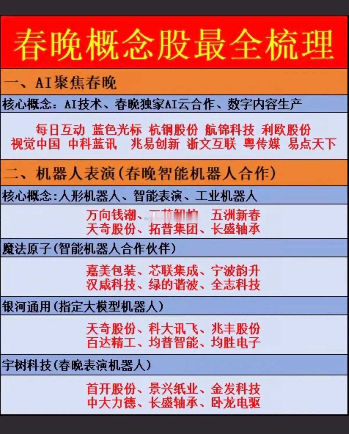 春晚概念股———最全梳理!1.人工智能,AI聚焦春晚2.机器人表演3.追觅科技相