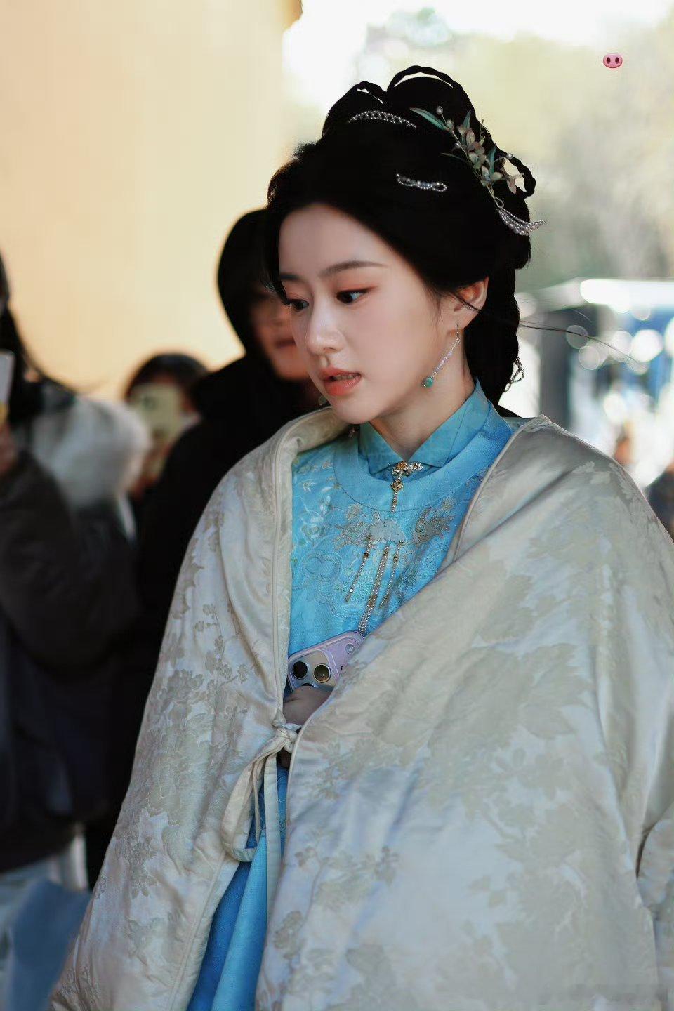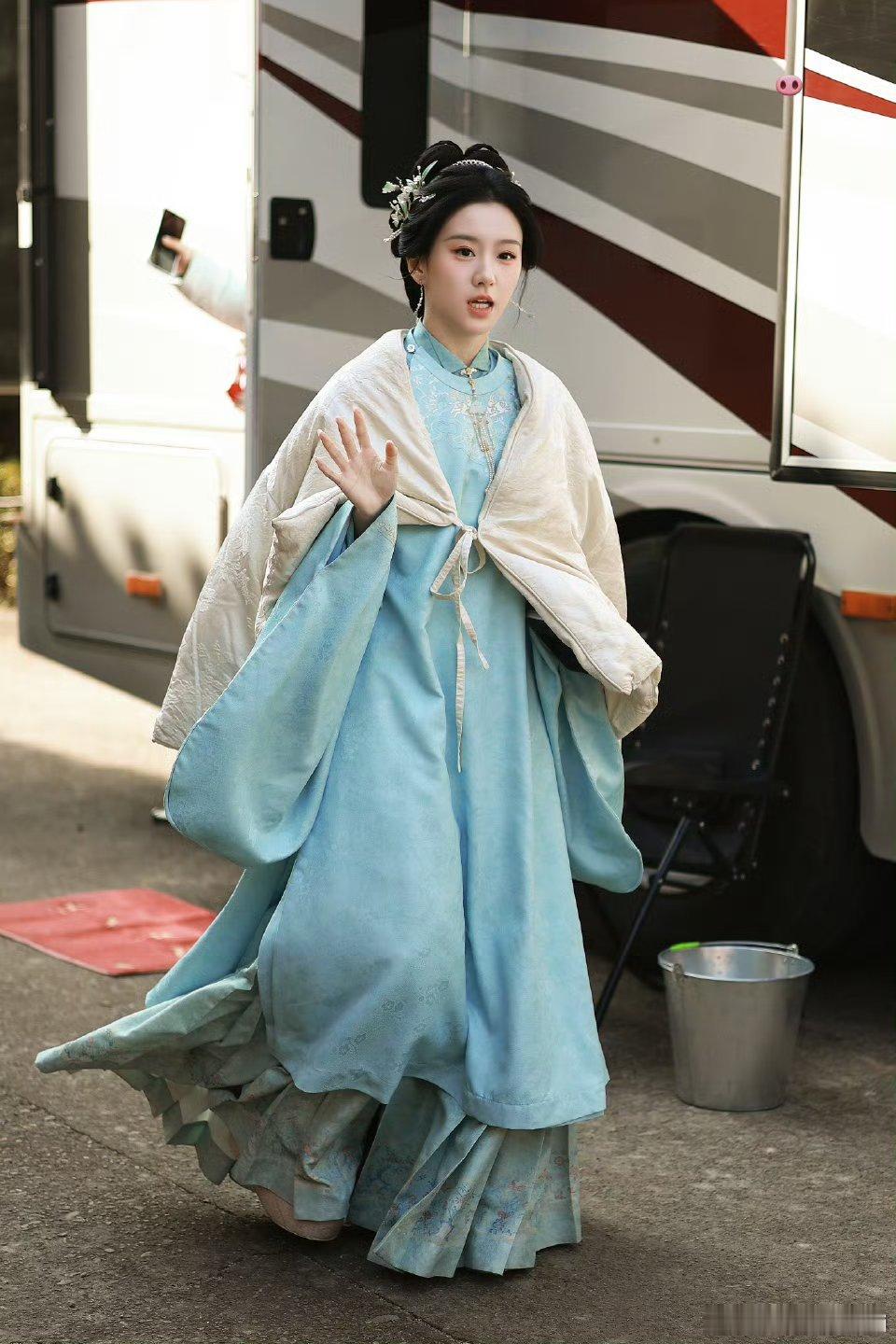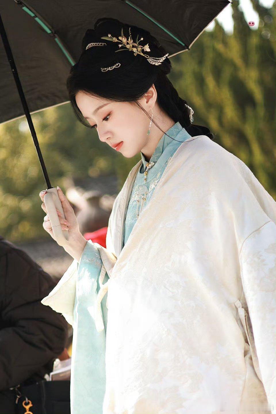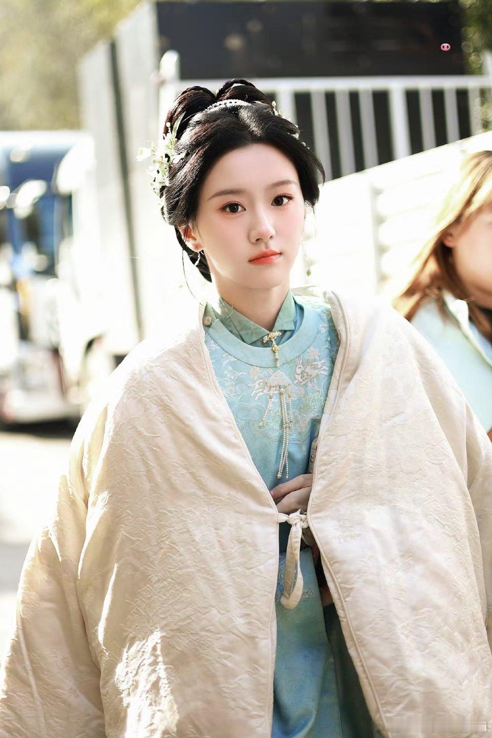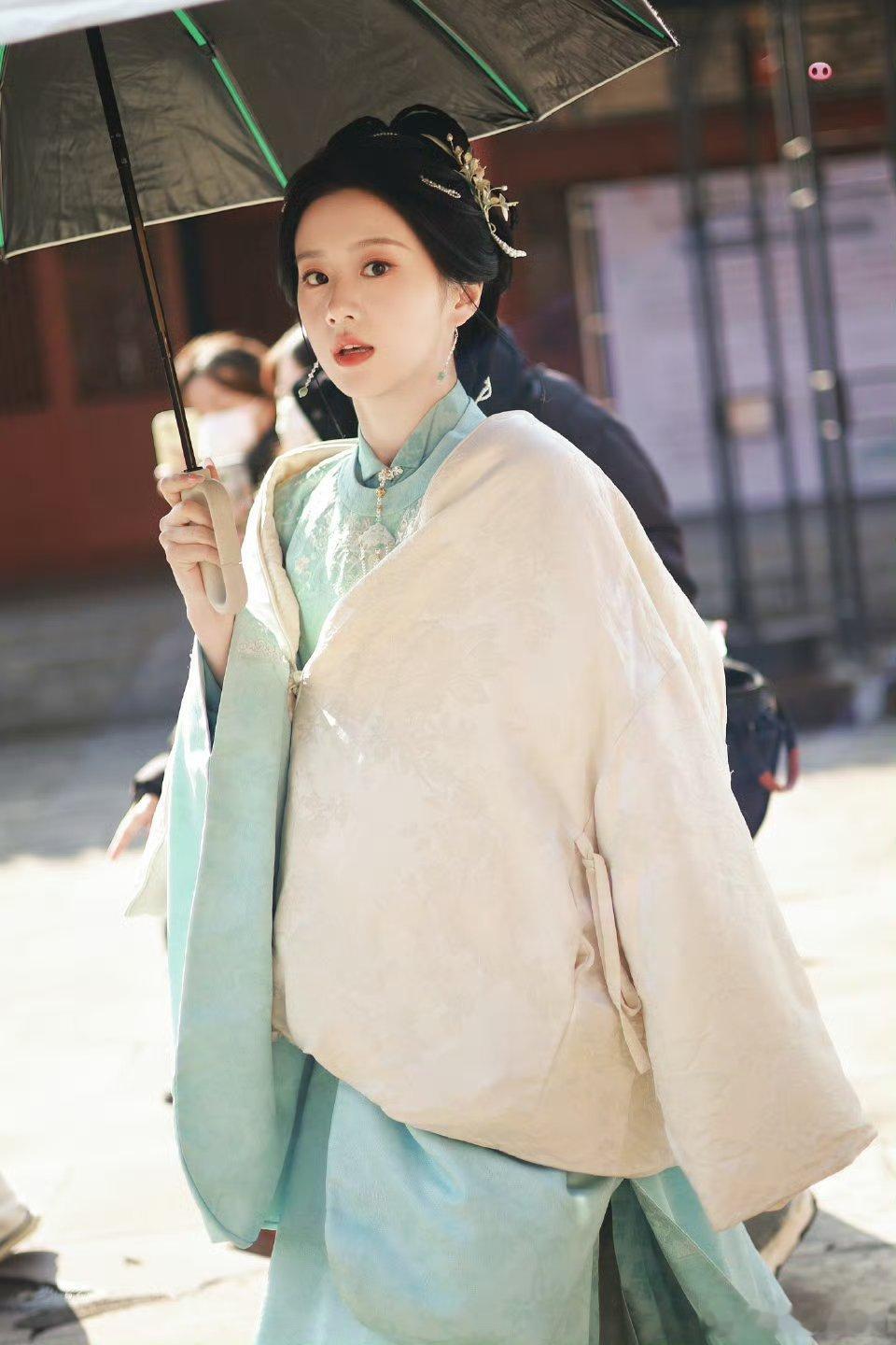 包上恩古装路透好惊艳~浅蓝色旗袍配米白披风,每一帧都像从画里走出来的!