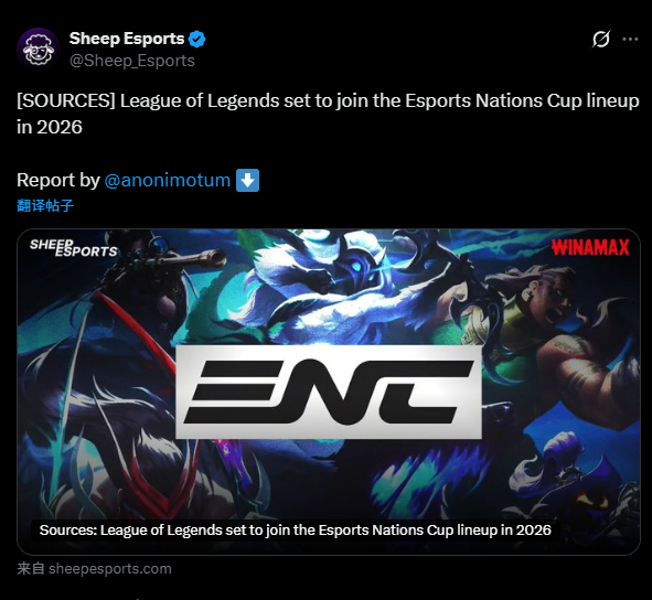 虎扑02月20日讯据外媒SheepEsports爆料,消息人士向他们透露《英雄联盟》也将作为11月2日至29日在沙特举办的电竞国家杯的正式项目之一。