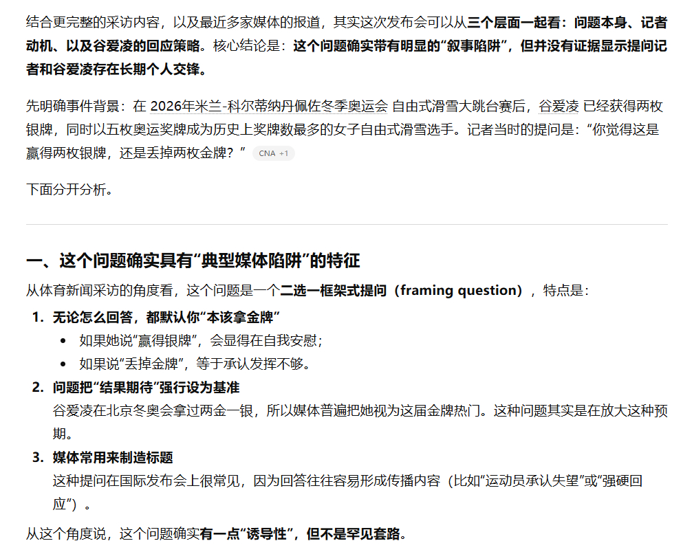 大跳台谷爱凌摘银后,法新社记者询问她“觉得自己是赢得两枚银牌,还是丢掉两枚金牌?”