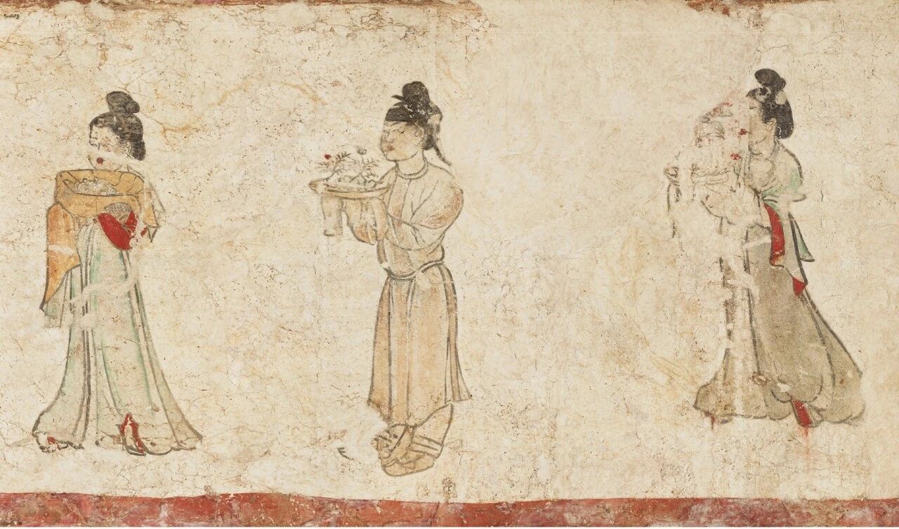 △陕西咸阳唐章怀太子墓出土的《捧物侍女图》中的“酥山”