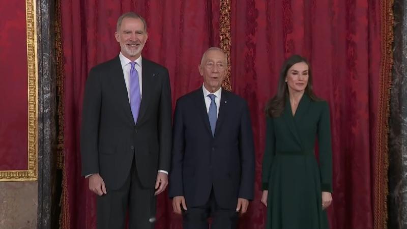 西班牙王室 速报一下,费莱今天在马德里皇宫接待来访的水果牙大叔,莱后珠宝含量为