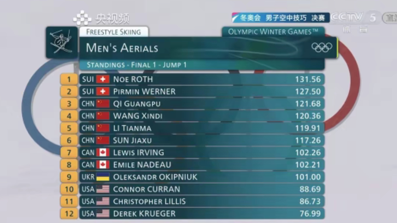 自由式滑雪男子空中技巧决赛 3456都是我们的!决赛一如既往的完美发挥,加油李天马第二跳发挥完美