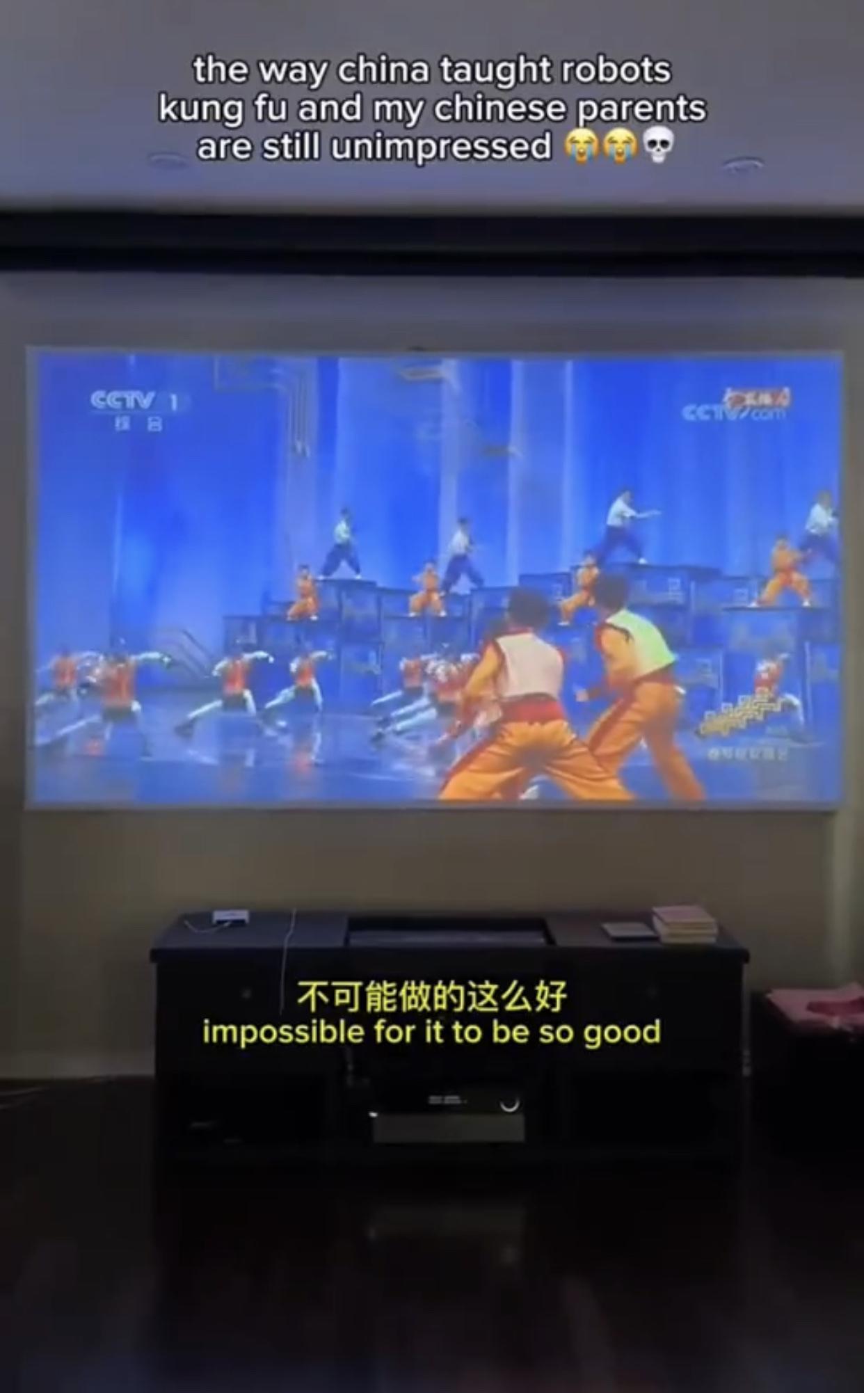 萝卜 2 2026-02-21 14:16 美国的电视这么模糊的吗?还是手机像素不行啊[大哭] 稀罕 回复 02-21 15:43 这是投影仪。从图中可以看到,画面是投射在一块平面上(看起来像是幕布或墙面),并且下方有投影仪的设备(黑色的投影主机),而电视一般是自带屏幕且外观和投影设备有明显区别,所以结合这些特征判断这是投影仪在播放内容。