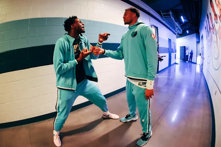 我记得新秀赛季结束后的那个夏天,我突然被叫去某个特定时间训练。我大概猜到会是谁在那里,但他们不能告诉我。结果莫兰特来做了个小训练。而且按规定,我其实不该和他同在一个场馆,因为他那时还没正式加入球队。所以就成了“巧合”。我不会说有谁逼我们一定要做朋友,但我觉得我们都知道,如果我们关系好,球队肯定会很开心。哈哈。但当我们越相处越多,就发现我们喜欢的东西都一样。到最后,根本不需要刻意。他是这个世界上最容易做朋友的人。