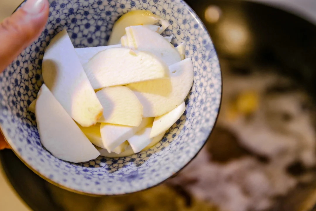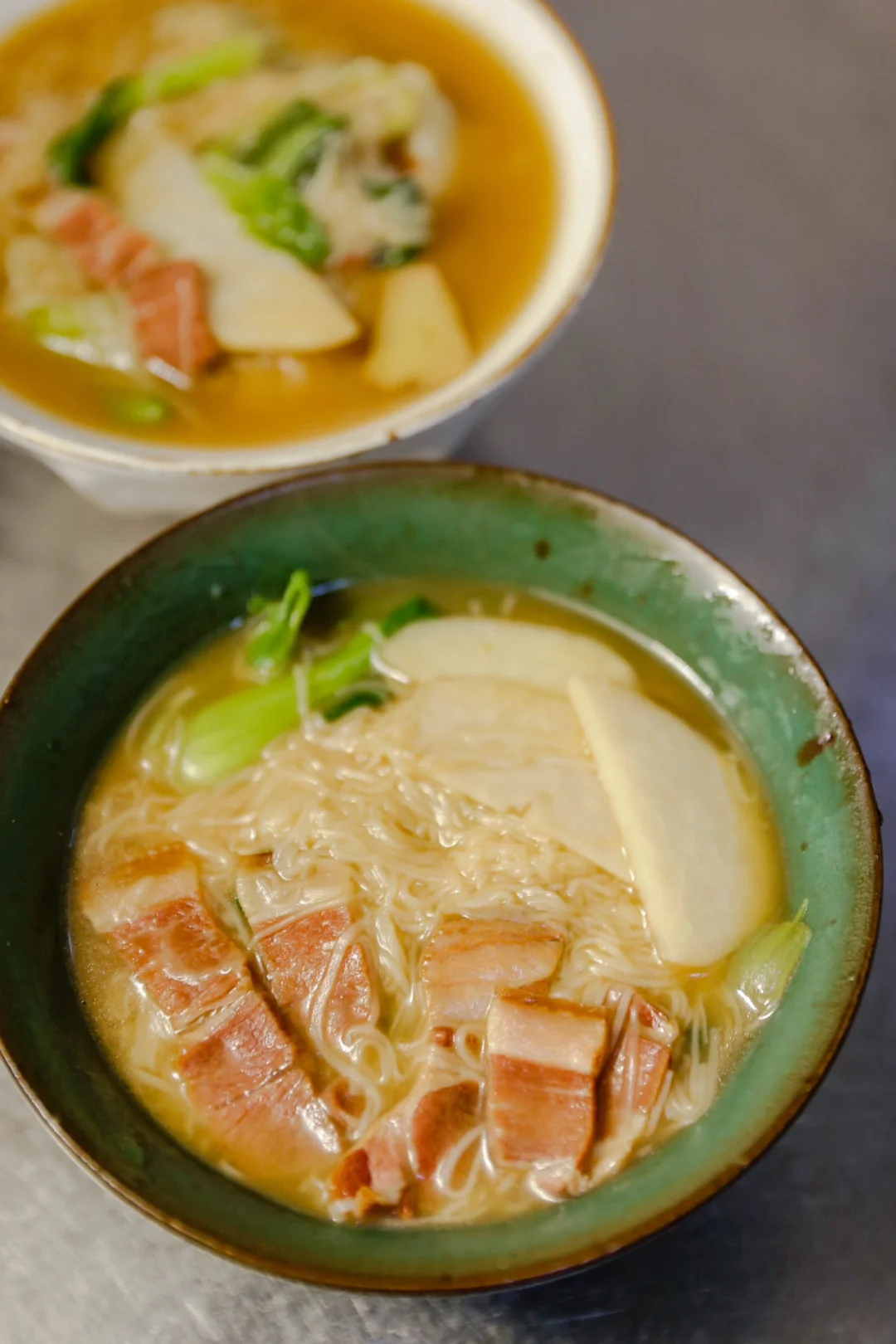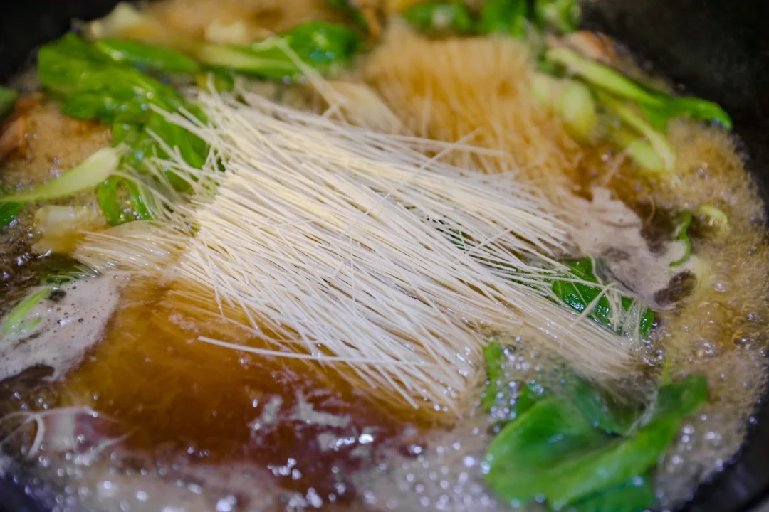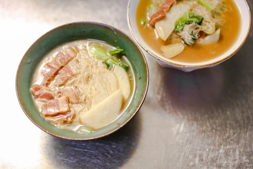 无需添加任何调味料,咸肉本身的味道就足以让这一碗咸肉芋头面出彩。