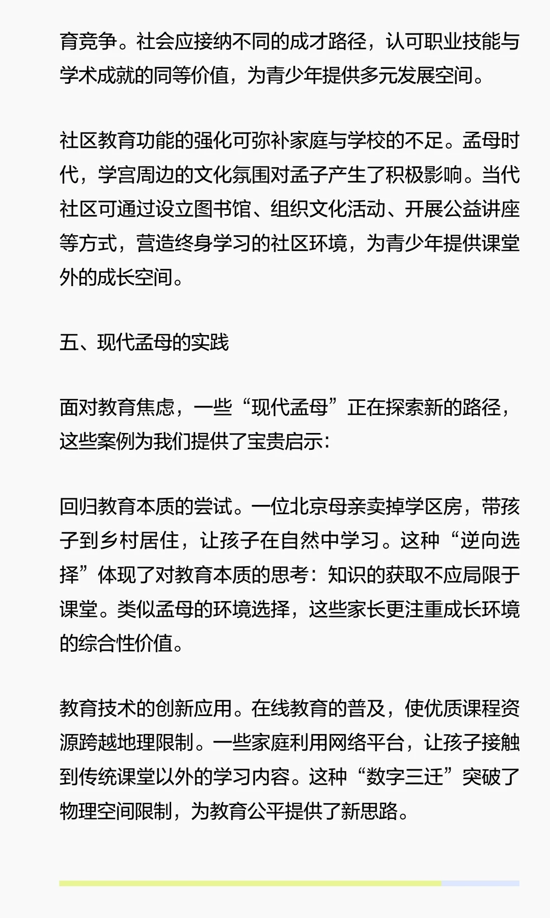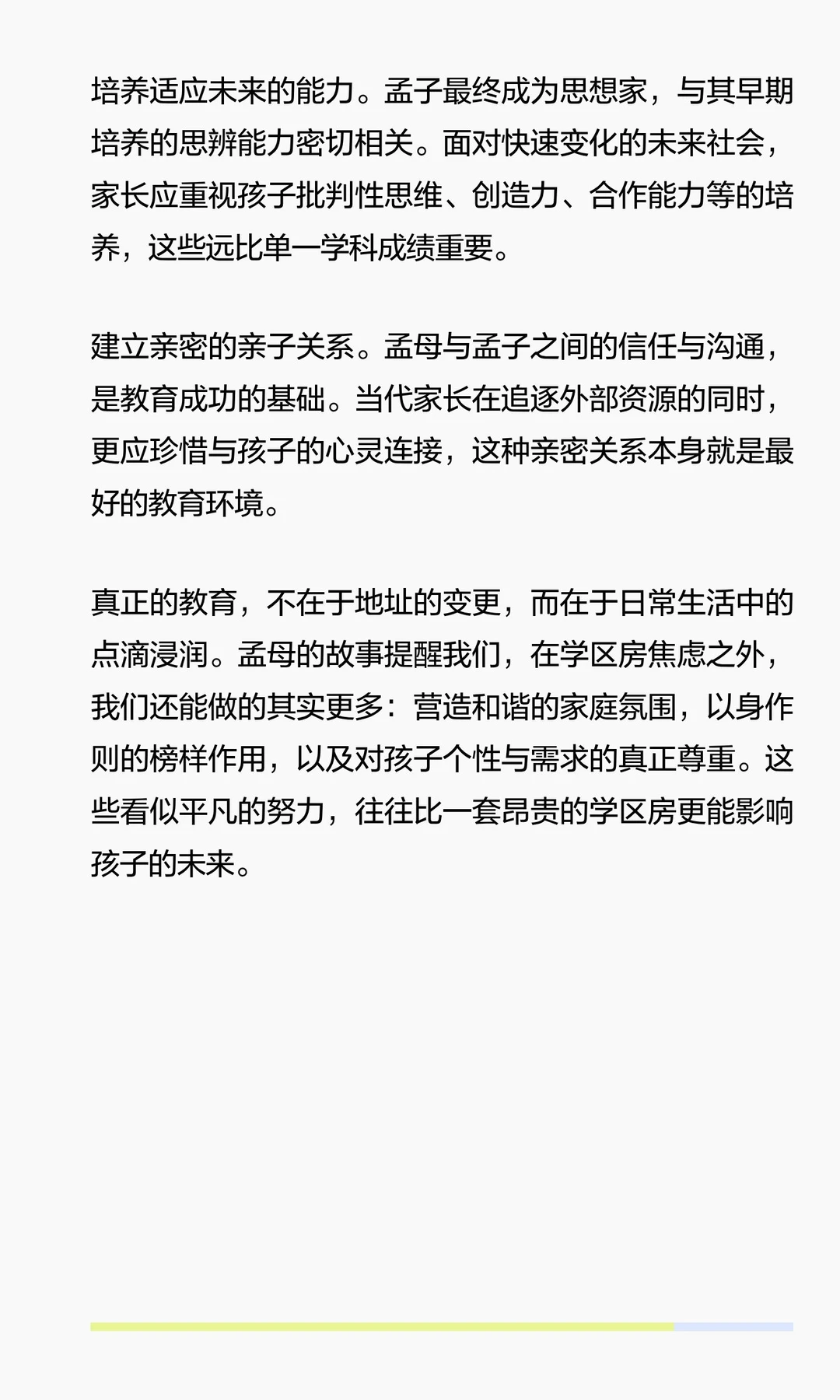 孟母三迁的核心在于环境选择与家庭教育的结合,强调成长环境对人格塑造的重要性。当代家长应重视日常言传身教,而非盲目追求学区房。真正的教育在于培养孩子适应未来社会的能力与品格,而非仅仅依赖外部资源。