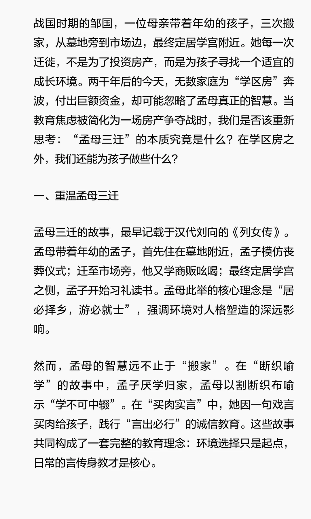 “孟母三迁”的当代启示:在“学区房”焦虑