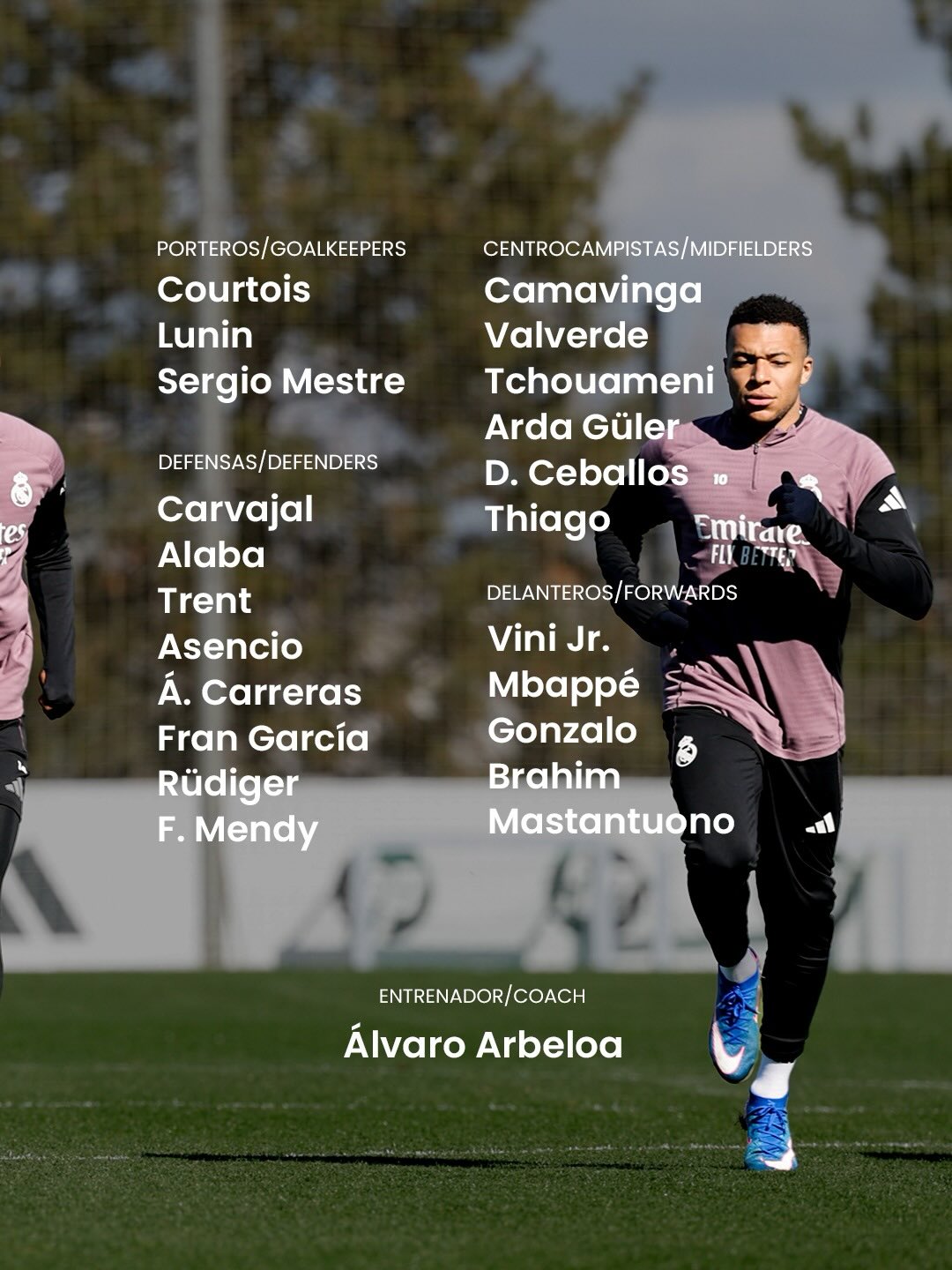 虎扑02月20日讯西甲第25轮,皇马客场对阵奥萨苏纳,赛前官方公布本场比赛球队大名单。