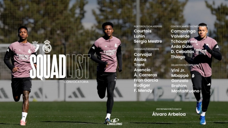 直播吧2月21日讯北京时间2月22日凌晨1:30,2025-26赛季西甲联赛第25轮,皇马将客战奥萨苏纳。赛前,皇马官方公布本场比赛球队大名单,姆巴佩维尼修斯领衔锋线,罗德里戈缺席。