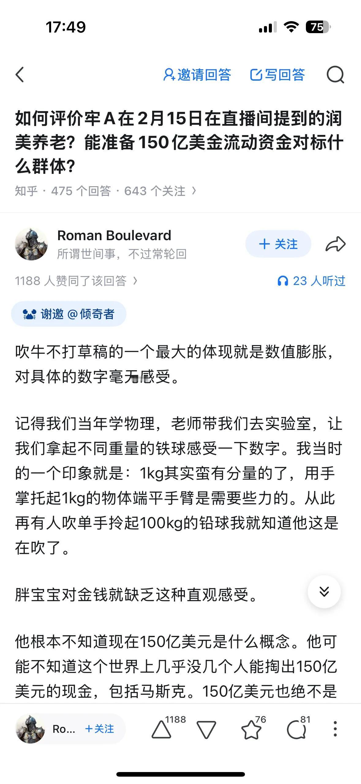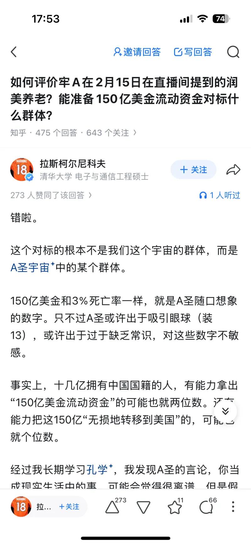 如何看待牢a这几天说的“150亿美金流动现金去美国无法舒服养老”? 最近,牢A一段关于“携带巨额财富赴美养老”的犀利忠告,在全网炸锅。他直言不讳地戳破一个残酷真相:就算你干干净净带150亿美金去美国,无债、无案底、无仇家,只要没有本土势力、没有圈层庇护、没有规则话语权,你就是一头送上门的肥羊,从落地第一天起,就被层层围猎,最终被吃干抹净,连骨头都剩不下。 网友:几个月前牢a嘴里是底层不适合去美国,后来变成中产不能去美国,现在变成超级富豪也不适合美国,超级富豪一样被斩杀。 你怎么看这种观点?