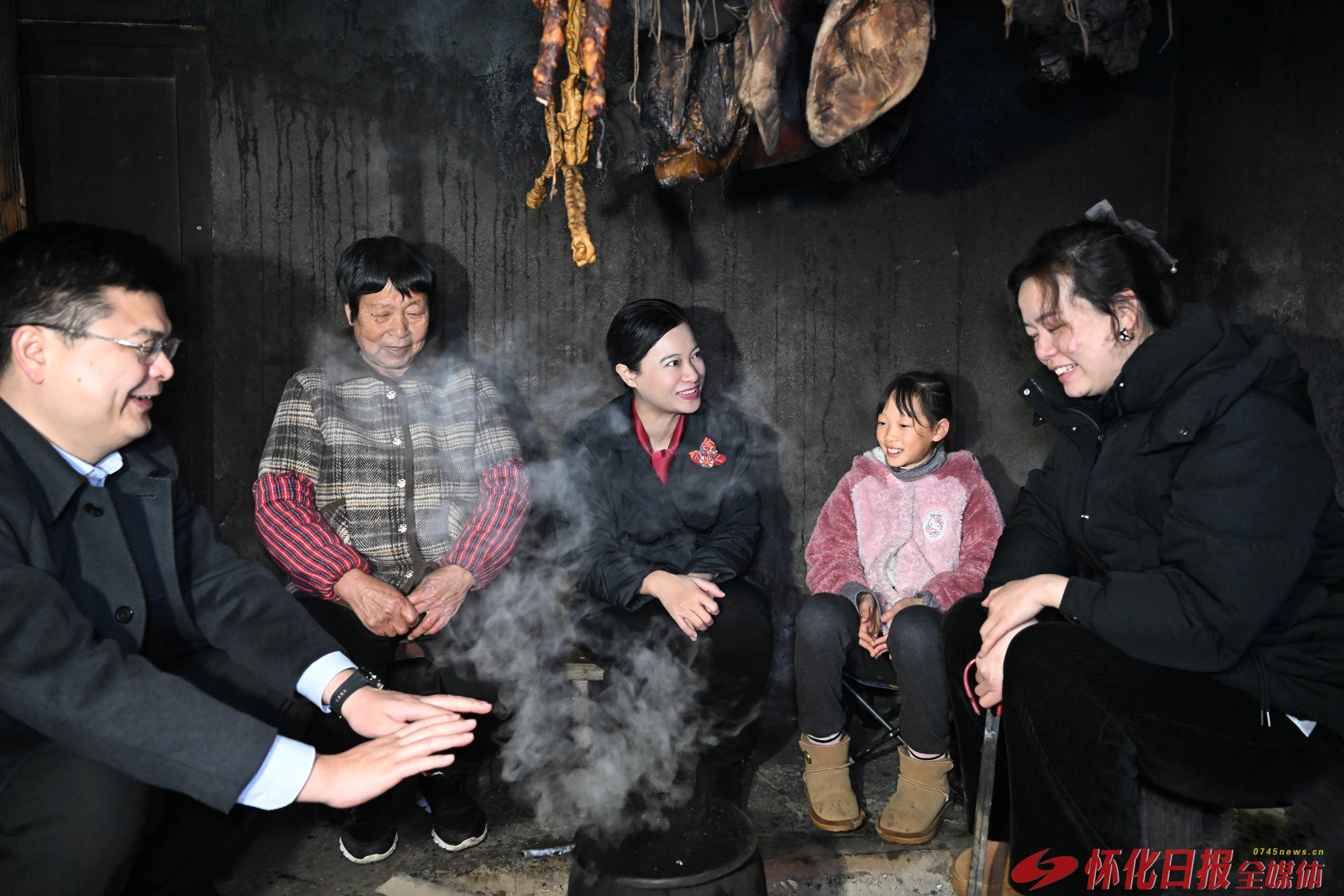 (2月19日,农历正月初三。市委副书记、市长韦朝晖来到鹤城区山村走访慰问群众,调研乡村振兴、文旅产业发展、安全生产等工作。图为韦朝晖在村民彭安妹家中走访慰问。怀化日报全媒体记者吴涛摄)