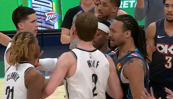 虎扑02月21日讯NBA常规赛,篮网对阵雷霆的比赛正在进行中。