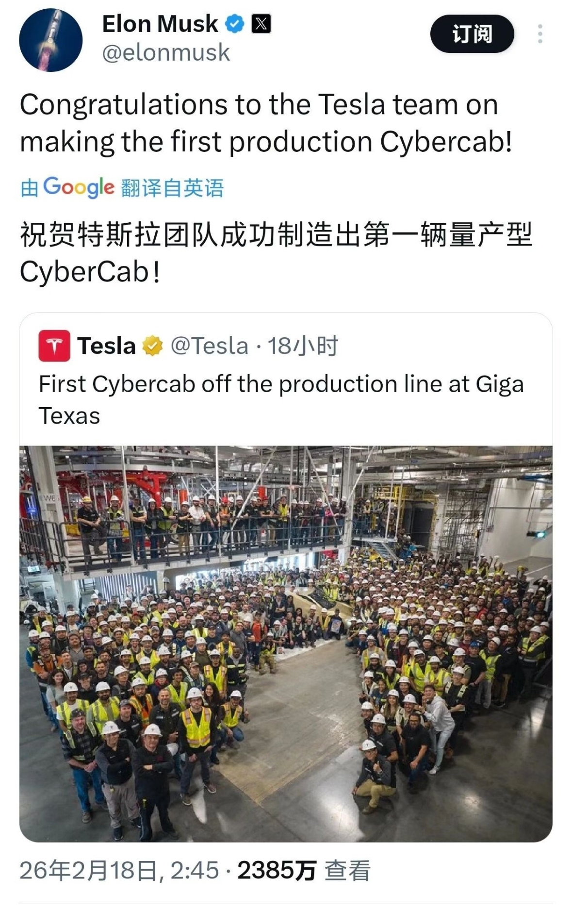 历史定格!2月18日,特斯拉造出世界第一辆无方向盘、无油门、无刹车的车。汽车诞生
