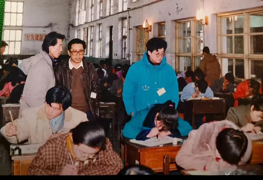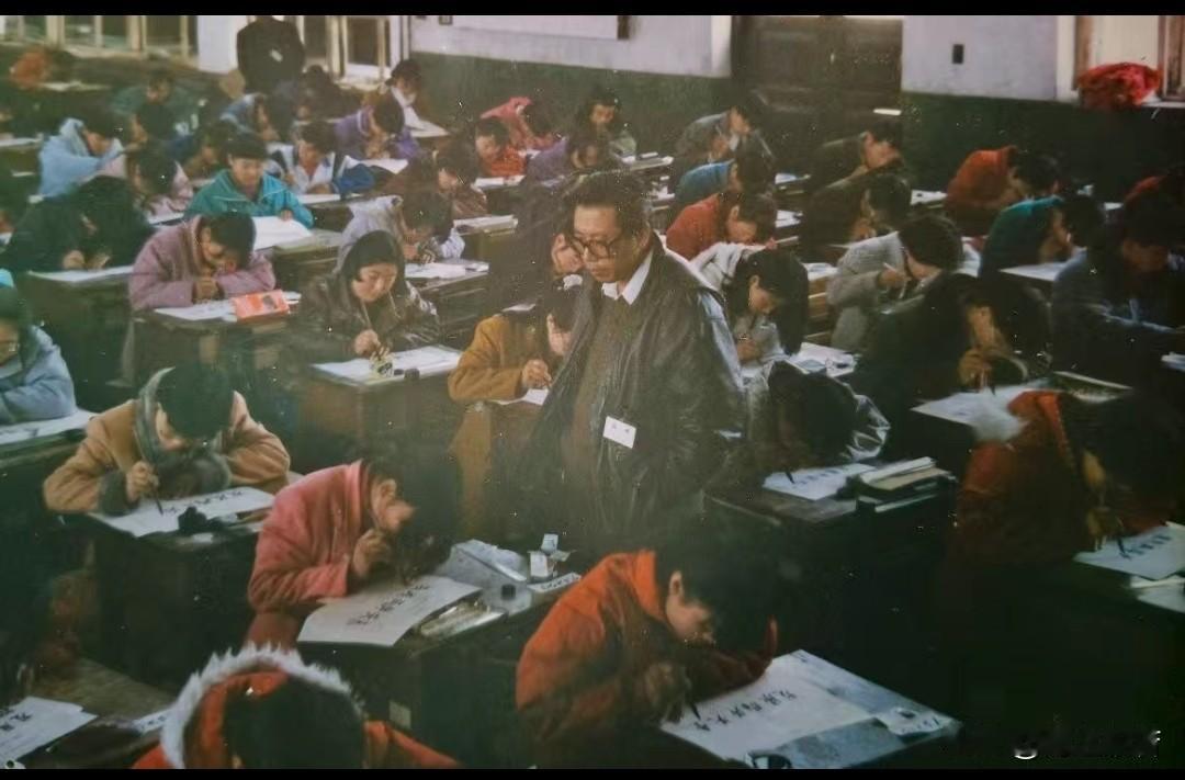 再次泪目,哪位同学这么有心啊,偶然的机会,让我看到这么熟悉的画面,回想青春年少时,仿佛梦一场,多么遥远的时光啊,想想当年整整考了一个星期呀,全面考核,从早上开始一直考到晚上,没点体力还真不成。熟悉的同学们,熟悉的老师,熟悉的大食堂考场,我坐在哪里呢,都看见我的同桌了。这应该考的是三笔字中的毛笔字,出个题目直接写,然后老师打分,计入总成绩,这个一般拉不开距离,所以不太紧张。