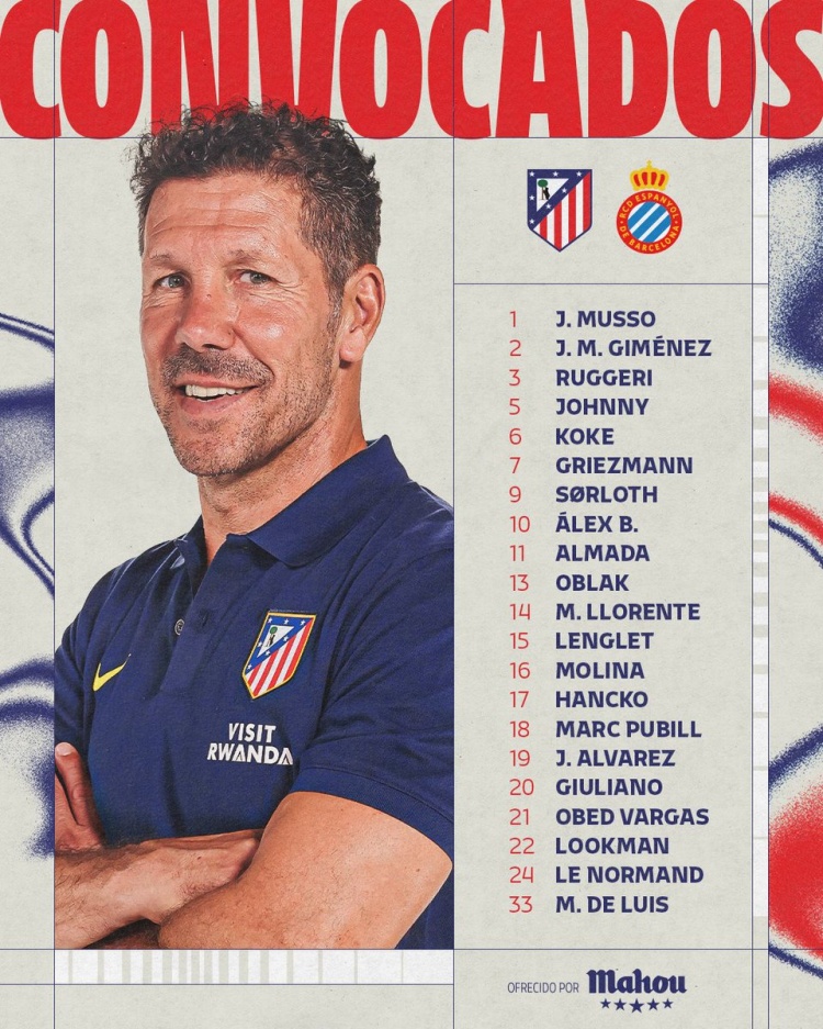 马竞对阵西班牙人大名单:
