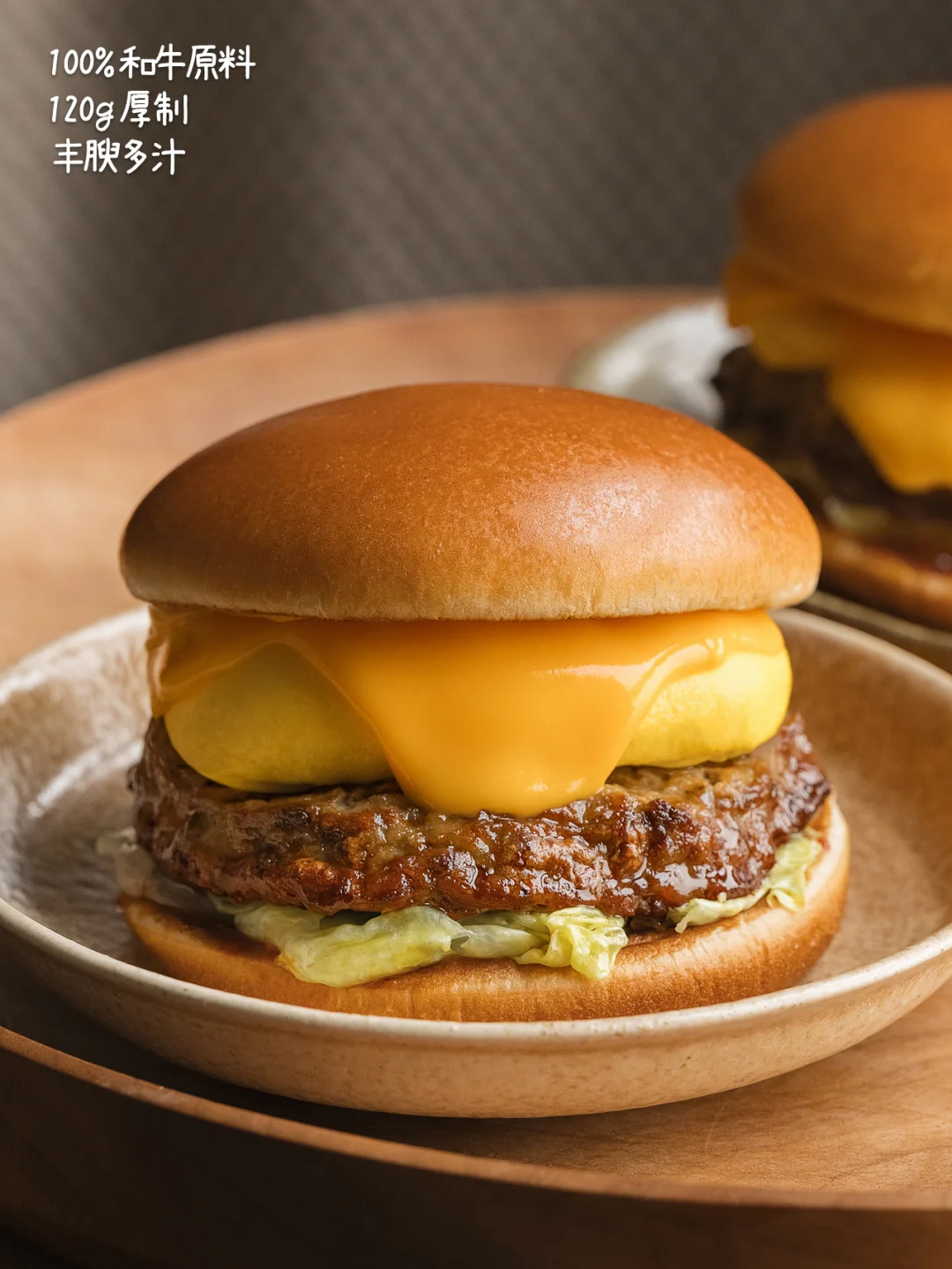 搭配上丰盈多汁的120g厚制纯正和牛🥩